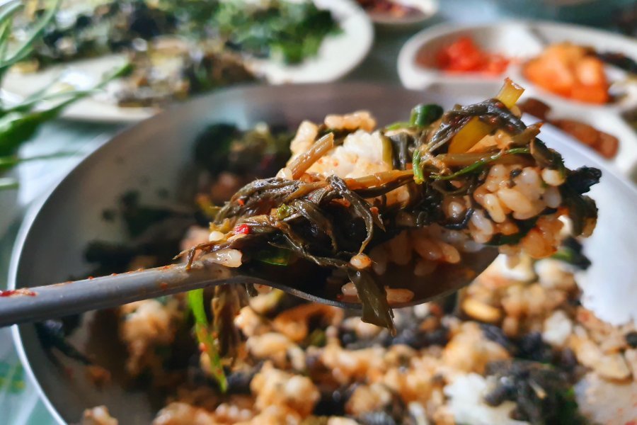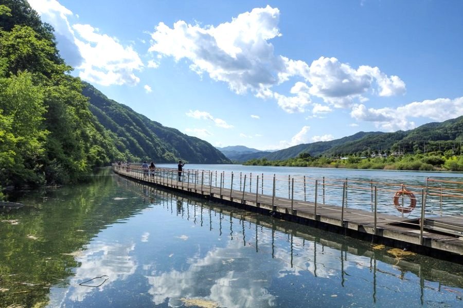 또한 파로호에서 잡아 올린 빙어조림도 별미이다. 강원도 두메산골 식당에서 향기 그윽한 산채비빔밥으로 허기진 배를 채운 후, 선착장으로 향하는 [붉은 출렁다리]를 건너 파로호 옆 숲길을 따라 버스가 있는 곳까지 약 2.7Km를 걷는다.
