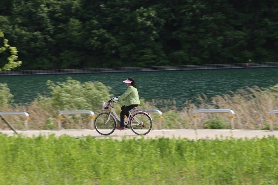 부교를 거닐며 주위를 둘러보고 남는 시간, 5월의 차디찬 화천 강물에 발을 담근 채, 저 멀리 분홍빛 자전거에 올라 청정산소 길을 달리는 이름 모를 아낙네를 바라보며 하루여행의 피로를 날려 보낸다.