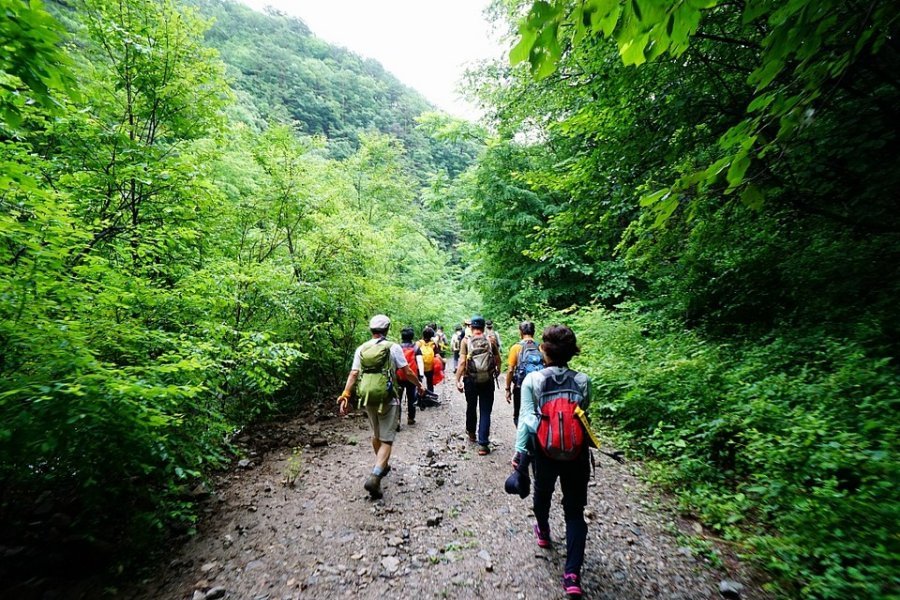 이곳부터 비수구미 마을까지 6.0Km를 오르막길 없이 계속 내려가는데, 1시간 정도는 돌이 많은 길로 이어져 하산길이 그리 녹록치 않았다. 하지만 중간쯤부터는 청명한 하늘빛과 호젓한 숲길을 따라 편하게 걸을 수 있는 야생화생태 길과 쉼 없이 흐르는 맑고 시원한 계곡물이 탐방객들의 마음을 깨끗이 씻어주는 듯하다.