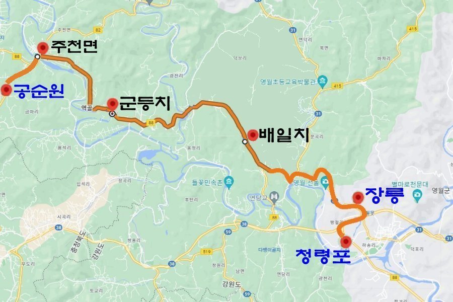 연이어 굽이굽이 이어지는 산길을 따라 힘겹게 배일치 고갯마루에 오른 단종은 잠시 발길을 멈추고 자신 때문에 목숨을 잃은 사육신(死六臣)을 떠올리며, 서산(西山)에 기우는 해를 향해 큰절을 하였다. 영월의 배일치(拜日峙)도 이런 애닮은 사연을 간직하고 있다. 산 넘고 물길을 돌아 귀향행렬이 이렛날에 도착한 곳은 청령포(淸泠浦)였다.