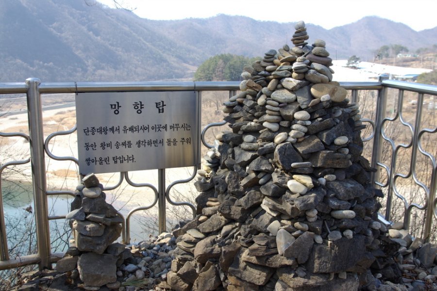 한양을 바라보던 망향탑당초부터 왕의 능지로 쓰인 곳이 아닌 까닭에, 협소한 능역이 다소 초라하게 보이지만 한편으로는 인간적인 따사로움이 능역에 배어있는 듯하다. 단종폐위 후 중종 조까지 모진세월을 연명하며 남편을 그리워한 정순왕후의 사릉(思陵)이 남양주에 있음에, 죽어서도 삼 백리나 떨어져 있어야 하는 왕가의 운명이 가을하늘 무상한 흰 구름처럼 애처롭기만 하다.