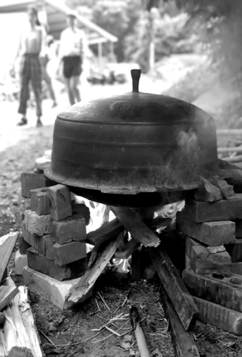 서투른 붕어몰가 끝나면 과수원 동네 아저씨의 도움으로 들녘 모퉁이에 가마솥 걸어놓고 장작불 지펴가며 감자와 양파, 대파 잘라 넣고 잡아 올린 붕어와 미꾸라지 쏟아 부어 고추장 듬뿍 풀어 넣은 시골집 매운탕 맛에 모두들 흠뻑 빠져들었다.