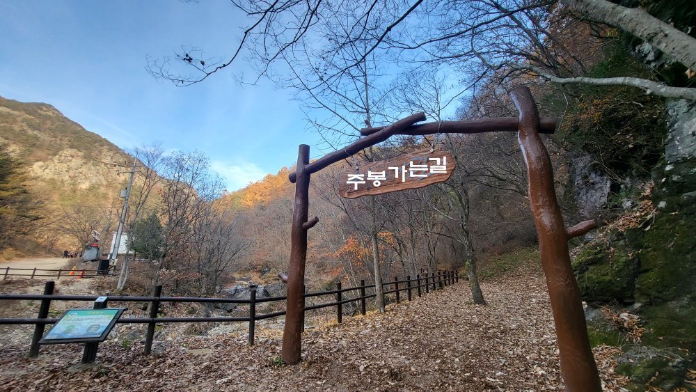 오후 2시경 주왕산 국립공원 주차장에서 시작된 탐방 길은 대전사 매표소에서 용추협곡을 거쳐 용연폭포까지 약 5.3km이다. 대전사(大典寺)를 시작으로 용추폭포에 이르러 용연폭포로 이어지는데 가을풍경을 담으며 걷다보면 왕복 약 2시간 30분쯤 소요된다. 주왕산 계곡탐방로는 깊어가는 가을풍경 덕에 걷는 내내 지루할 틈이 없다.