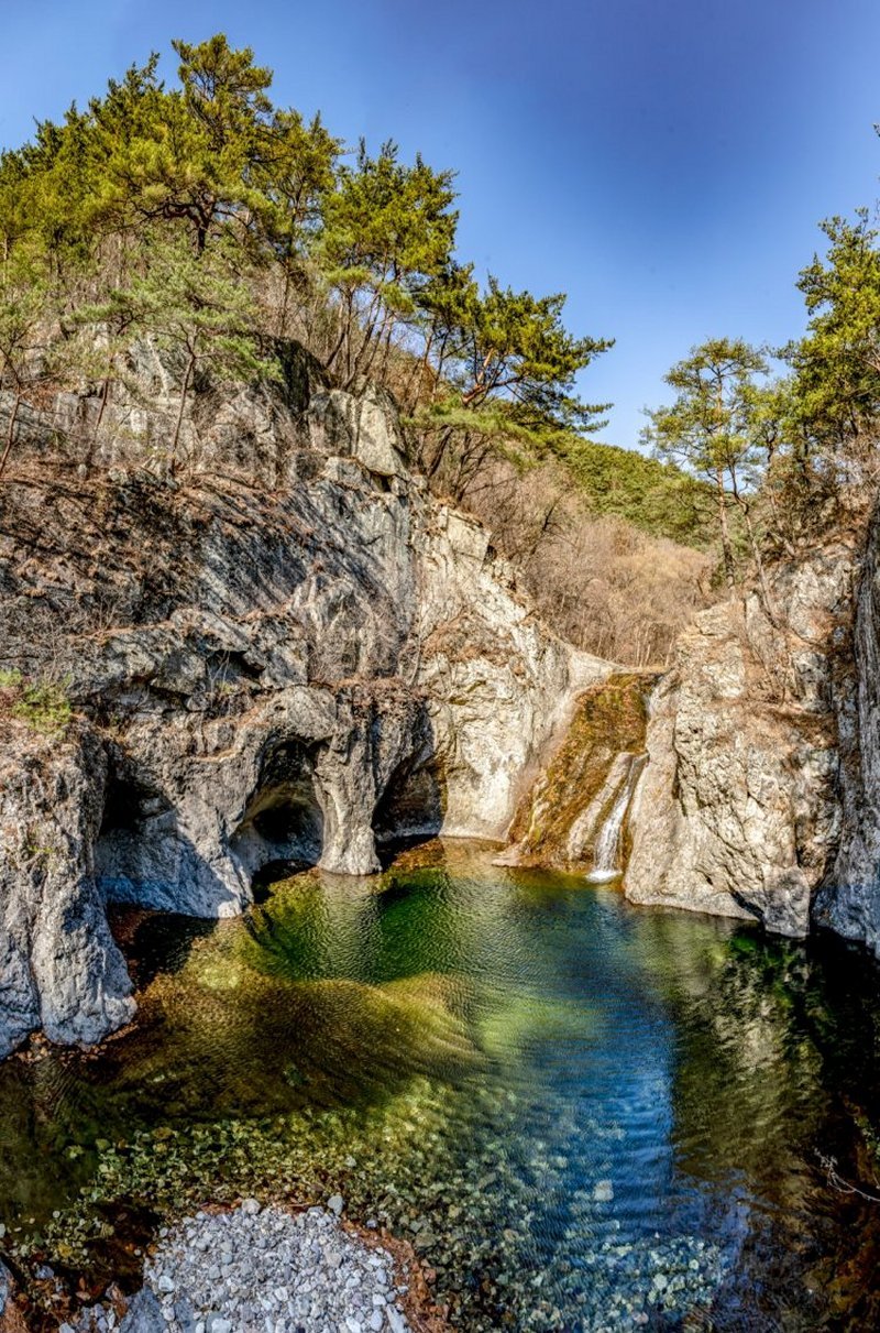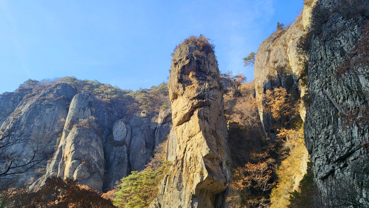 주변에 큰 산들이 없기에 산세가 더욱 가파르고 험준해 보여 이곳의 기암절벽은 옛날부터 조선8경 중 하나로 꼽혔던 만큼 멋진 경관을 이루고 있다. 파란 가을하늘 아래 기암계곡을 따라 맑은 물이 흐르는 것을 보노라면 문득 장가계의 축소판 같은 느낌도 지울 수 없다.