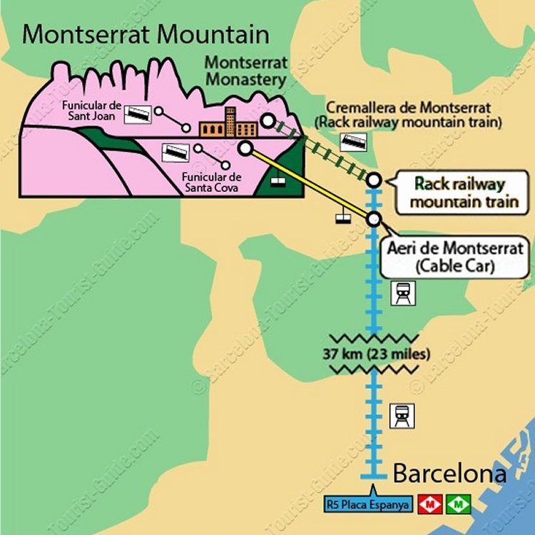 이는 훗날 [몬세라트 수도원]의 주춧돌이 되었고, 지금도 수도사들이 머물고 있다. 1811년 나폴레옹이 스페인을 점령했을 때도 신자들이 목숨을 걸고 검은 성모 마리아상을 지켜냈다. 교황 레오13세는 성모상을 카탈루냐 수호성인으로 지정했다. 수도원광장 맞은편 산봉우리에는 산 미구엘 십자가(Sant Miquel Cruz) 전망대가 보인다.
