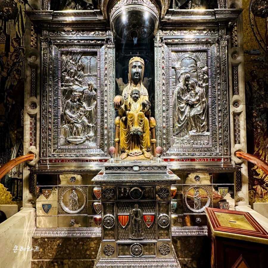 14€ 입장료를 내고 검은 성모상이 있는 대성당으로 들어가면 50년경 만들었다는 스페인의 성물(聖物)이자 모레네타(La Monereta)라 불리는 검은 [성모 마리아상]이 보전돼 있다. 검은 피부색이 특징인 성모마리아 상은 [몬세라트 수도원]의 상징이자 카탈루냐의 수호성인이라 한다.