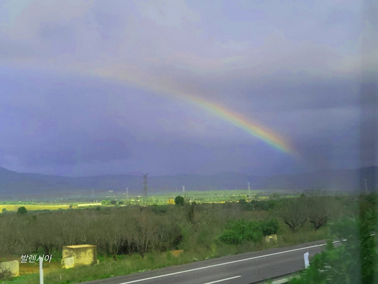 여행 이렛날, 카탈루냐 지방 바르셀로나 근교에 있는 몬세라트(Montserrat)로 4시간 반을 달려간다. 스페인은 국토면적이 약 5,000만ha로 한국(1,000만ha)의 5배이기에 지역 간 이동시 하루 5~6시간을 달려야하는 힘든 점이 있다. 몬세라트로 향하는 동안 수줍게 고개 내민 하와이 무궁화와 일곱빛깔 무지개가 여행의 피로를 씻어준다.