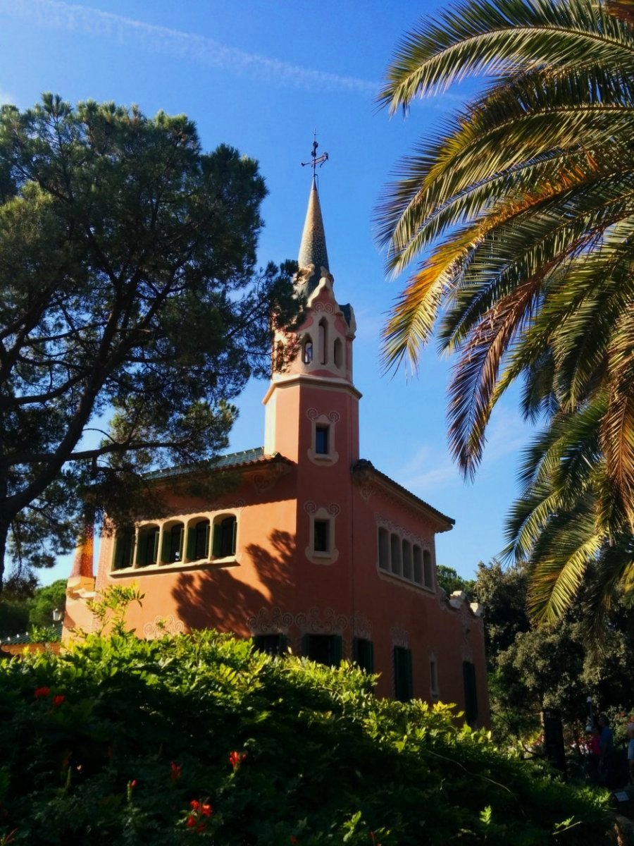 티켓(10€)을 받아들고 후문을 통해 녹음이 우거진 구엘공원 안으로 들어가니 하늘높이 작은 십자가가 걸려있는 붉은빛 건축물이 제일먼저 눈에 띤다. 이곳은 가우디가 20여 년간 거주했던 곳으로 당시의 모습을 보존한 박물관으로 운영되고 있다.