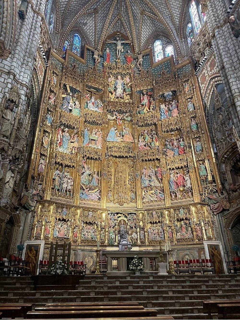 성당의 대제단(Capilla Mayor)은 27명의 장인들이 매달려 1504년에 완공한 것으로 예배당 중앙제단 뒤 병풍은 온통 황금빛으로 장식돼있다. 7열의 조각들이 4줄로 배열돼 있는데 아래부터 성모상, 성채현시대, 예수탄생, 성모승천 내용이 조각돼 있고, 중앙상부에는 예수가 십자가에 못 박힌 모습 등 예수일생이 조각돼있다.