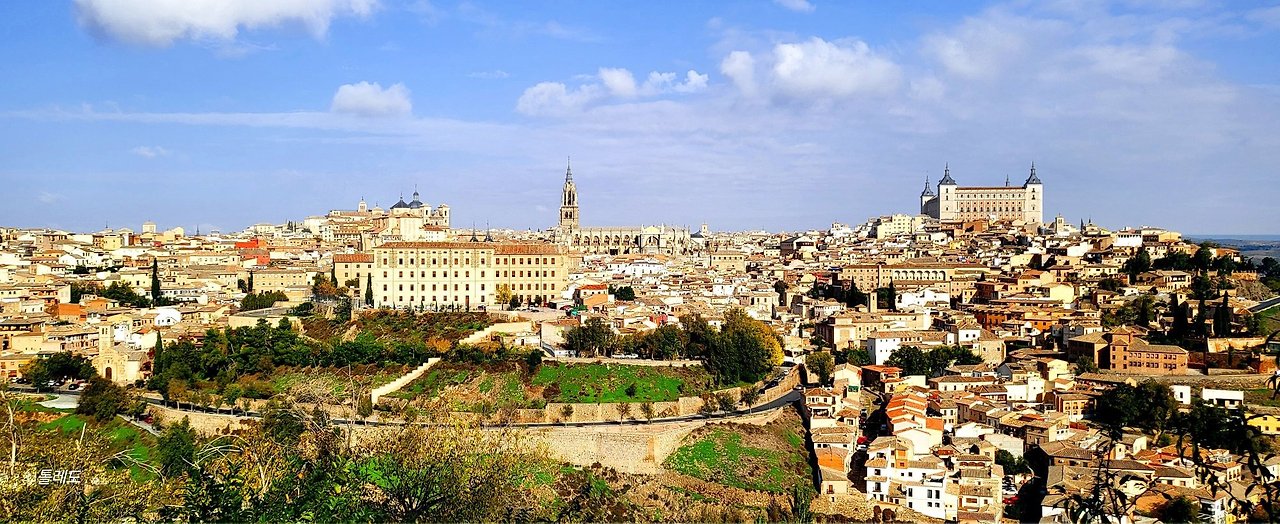 언덕 포토존인 남쪽 ➃빠에 전망대(Mirador del Valle)에서 내려 20분쯤 멋진 톨레도 전경을 감상하고 인증 샷도 남긴다. 전망대에서 톨레도 구시가지를 한눈에 바라보니 ✫알카사르 요새(右)와 ✫톨레도 대성당(中) 등 도시하나가 거대한 역사유적처럼 보이는 색다르고 멋진 경험이었다.