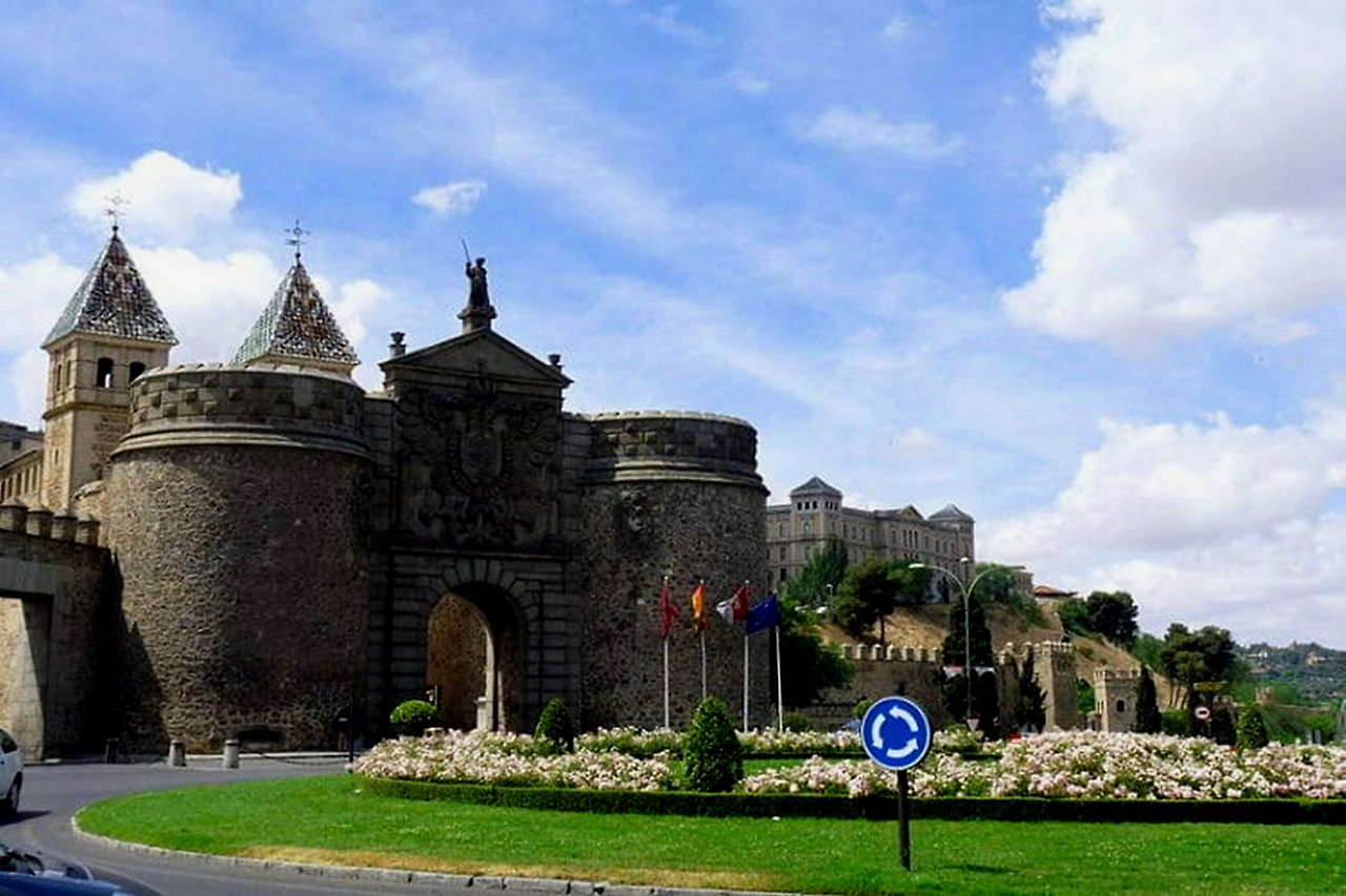 꼬마열차에 올라 톨레도 전망이 보이는 ➀소코도베르 광장을 출발해 [산타크루소 미술관]을 지나 알카사르 북쪽 ➁비사그라(Bisagra) 성문을 지난다. 견고하게 보이는 성문은 톨레도 구시가지와 신시가지로 출입하는 성문으로 이슬람교도들에게서 톨레도를 수복한 [알폰소 6세]의 문이라고도 한다.