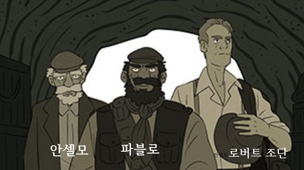 안셀모가 비살상주의자라면 파블로는 살상주의자인데 로버트 조던은 그 중간에 있다. 로버트 조던은 공화파 사령부로부터 계곡다리를 폭파하란 명령을 받고 계곡인근에 게릴라를 이끌고 있는 대장 파블로를 만난다.