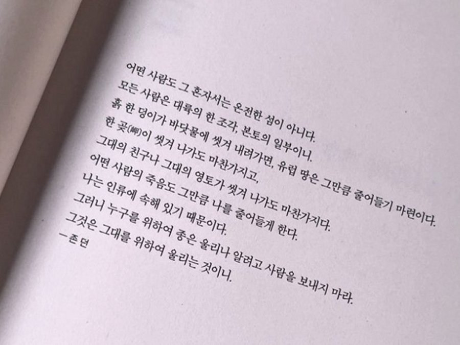 어떤 사람이라도 그 혼자서는 온전한 섬이 아니다.