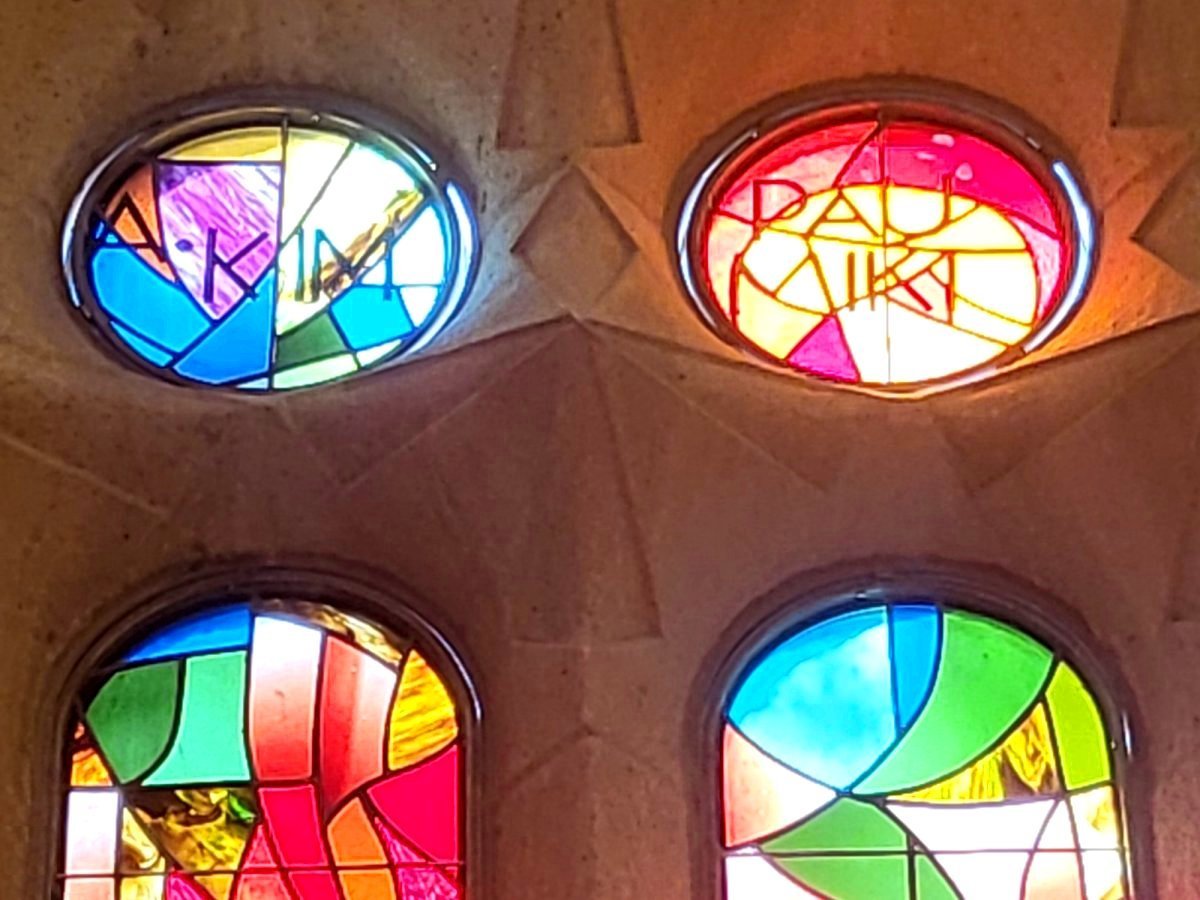 가우디는 햇빛에 반사돼 내부로 들어오는 스테인드글라스 빛으로 예배당의 경건함을 고양시켰다. 서쪽 붉은 스테인드글라스는 [죽음]과 [순교]를 의미하며, 동쪽의 푸른색 스테인드글라스는 [희망]과 [탄생]을 의미한다. 사그라다 파밀리아 성당 벽에 400여개 언어로 쓰인 주기도문이 적혀있다.