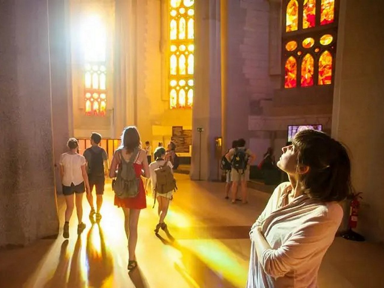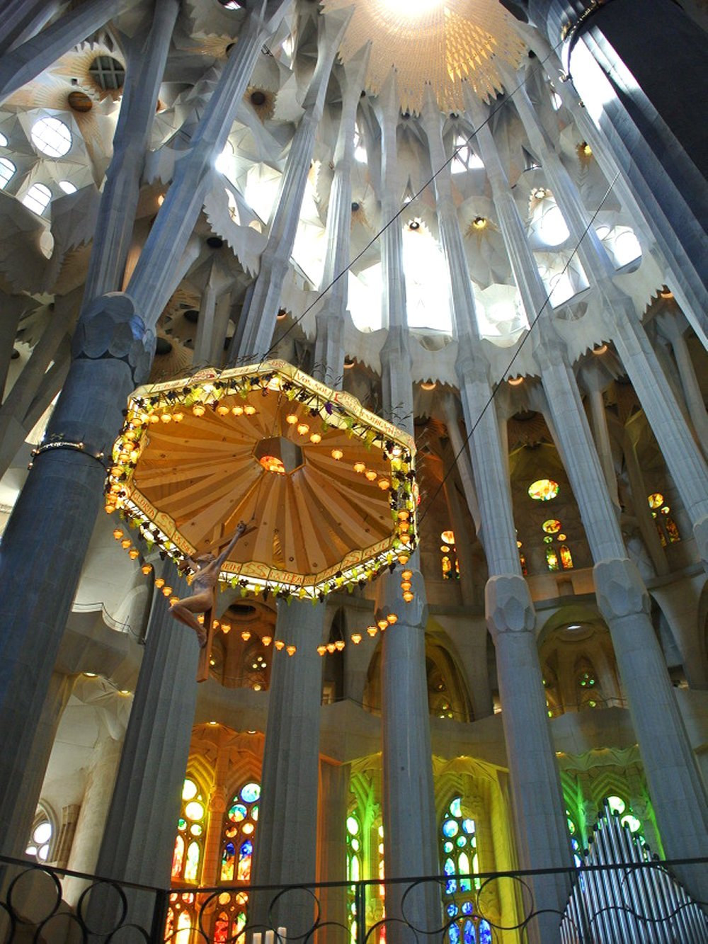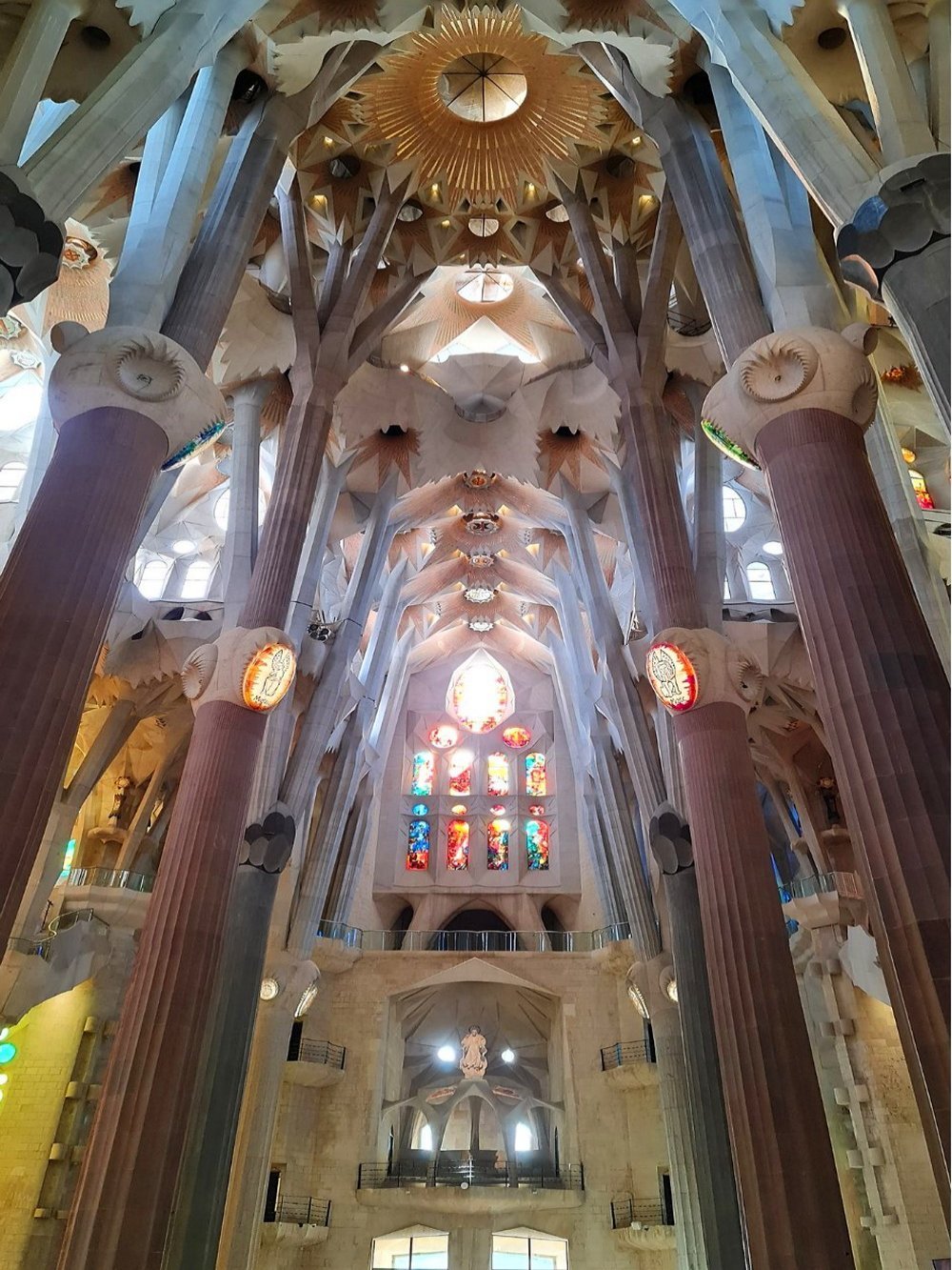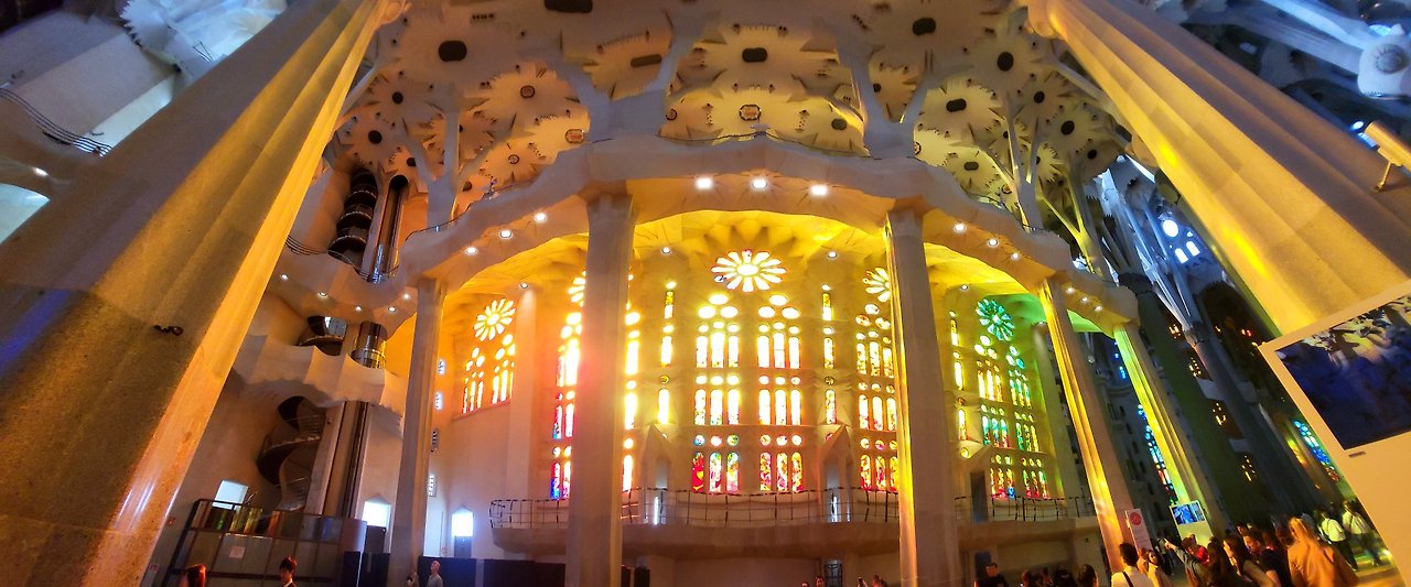 하늘과 별을 담아낸 천장, 스테인드글라스, 나무처럼 기운 나선형기둥으로 [빛의 숲]에 온 것 같은 느낌이다. 시간대별 태양의 방향에 따라 색이 달라지는 다양한 색채의 스테인드글라스 물결이 성당내부를 가득 메우고 있다. 빨강에서 노랑, 노랑에서 초록, 초록에서 다시 파랑으로 바뀌는 장엄한 빛의 축제이다.