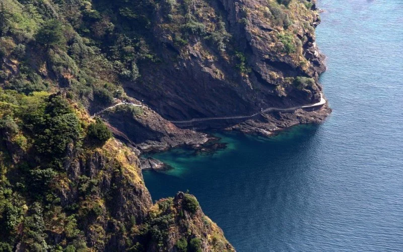 하지만 전망대에서 바라본 아찔할 정도의 가파른 봉우리가 울릉도에 와 있음을 실감케 한다. 카메라를 줌한 사진은 도동항에서 저동항으로 향하는 행남 해안산책길이다.