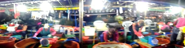 잠시 도동항입구에 세워진 야간 수산시장을 둘러보며 물오징어 가격을 물어보며 망설이다가 숙소로 향하는 미니 관광 버스가 잠시 기다리는 동안 황급히 도동항으로 달려가 울릉도 오징어 회와 소라, 초고추장을 비닐봉지에 가득 담아 넣고 드림관광펜션으로 향하며 울릉도에서의 첫날을 마감한다.
