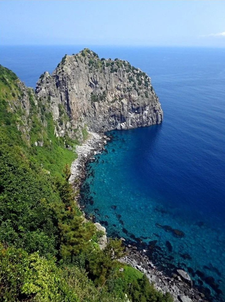 제주도의 해변은 화산암이 잘 부서져내려 절벽이 적은 대신 바다는 얕고 비취빛이지만, 울릉 도는 분화구인 나리분지 이외에는 평지를 찾아볼 수 없고 해변은 온통 거대한 절벽을 이루며 깊은 수심의 바다 빛은 코발트블루 빛을 띠고 있다.