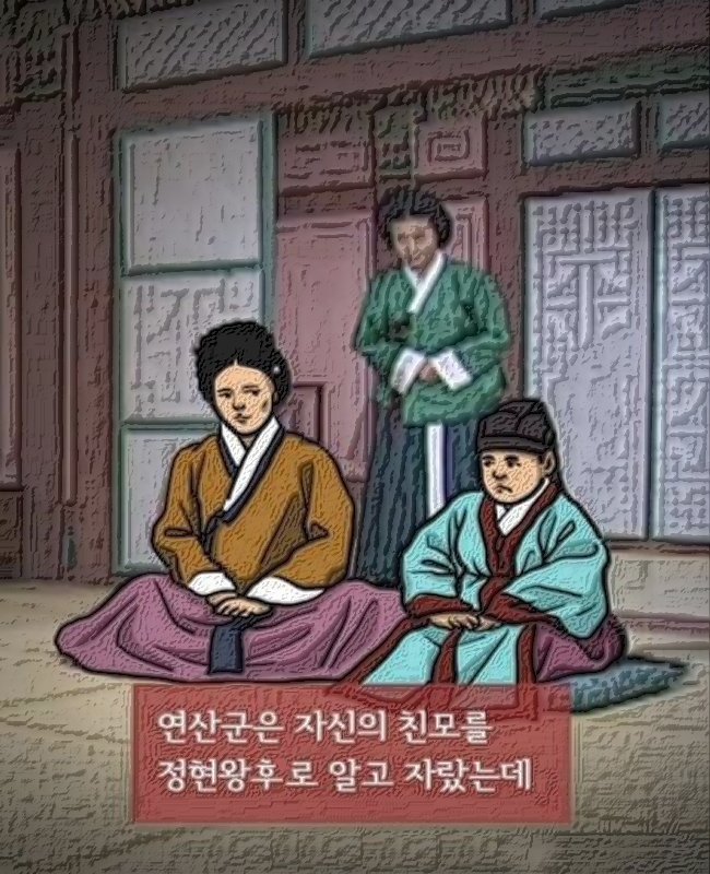 정현왕후는 친아들 진성대군이 태어나면서 전처 자식인 연산에게 친모로서의 진정한 사랑을 베풀지는 못했을 것이다. 할머니인 인수대비도 연산을 미워하고 진성을 유난히 사랑했다 한다.