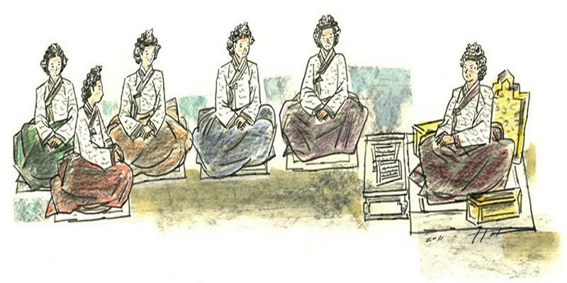illustrator / 최달수그녀는 성종 조 승문원 지사였던 박윤창의 딸로 태어나서 효령대군의 손자 태강수(泰江守) 이동에게 출가한 세종 형님의 손자 며느리였다. 양반가문 출신인 어우동은 남편이었던 태강수와의 이혼송사 이후 기녀행세를 하며 기방을 드나들다보니 기생으로 알려지기도 했다.