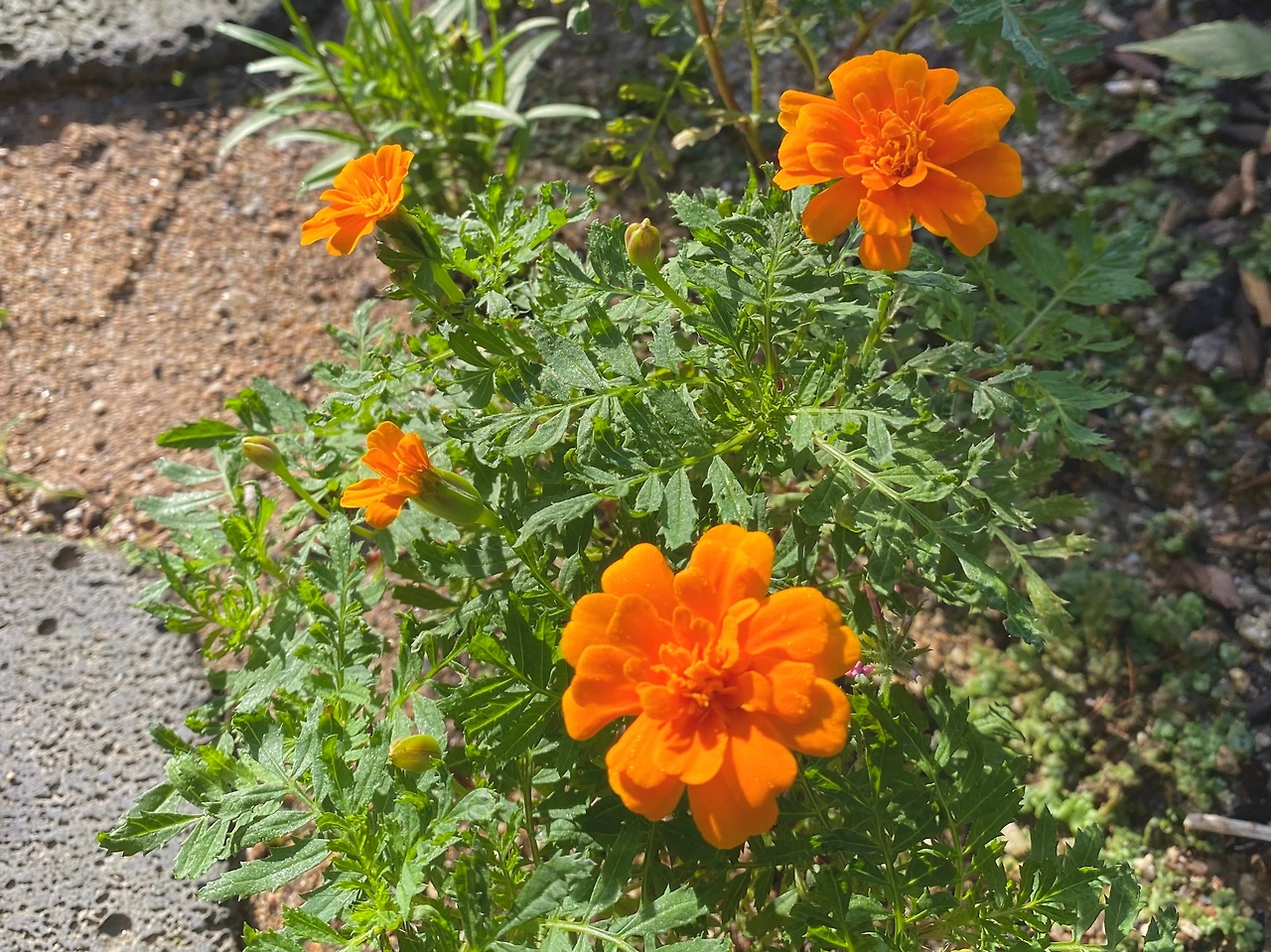 모종을 심을 때는 필 것으로 생각하지도 않았던 하얀색 부처꽃이 하늘하늘 마당에서 춤을 추고 있다. 작년에 심었던 메리골드가 지난가을 자기 혼자 씨앗을 마당에 떨구고 겨울과 봄을 지나 자연 발아를 했다. 그리고 여름을 지나 꽃을 피우며 선명한 주황색으로 우리 집의 초가을 마당을 밝혀주고 있다.