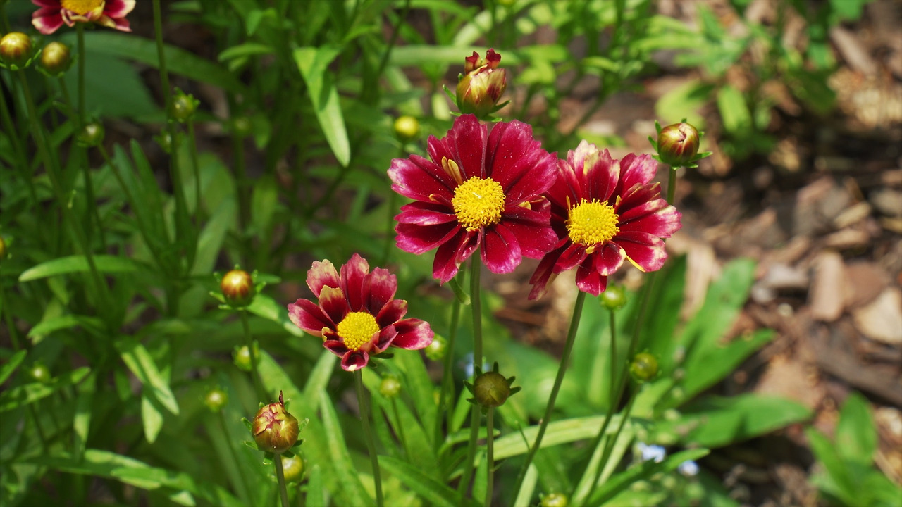 코레옵시스 리틀 뱅 레드도 개화를 시작했다. 작년 초가을에 심은 이 꽃은 일 년 만에 덩치를 엄청나게 키웠다. 작년과 비교해 두 배가 넘게 커진 덩치는 물론, 꽃봉도 비교할 수 없을 만큼 많아졌다. 비록 꽃 하나하나의 크기는 작지만 진득한 와인빛의 매혹적인 꽃잎이 초여름 마당에 고급스러운 분위기를 선물해 준다.