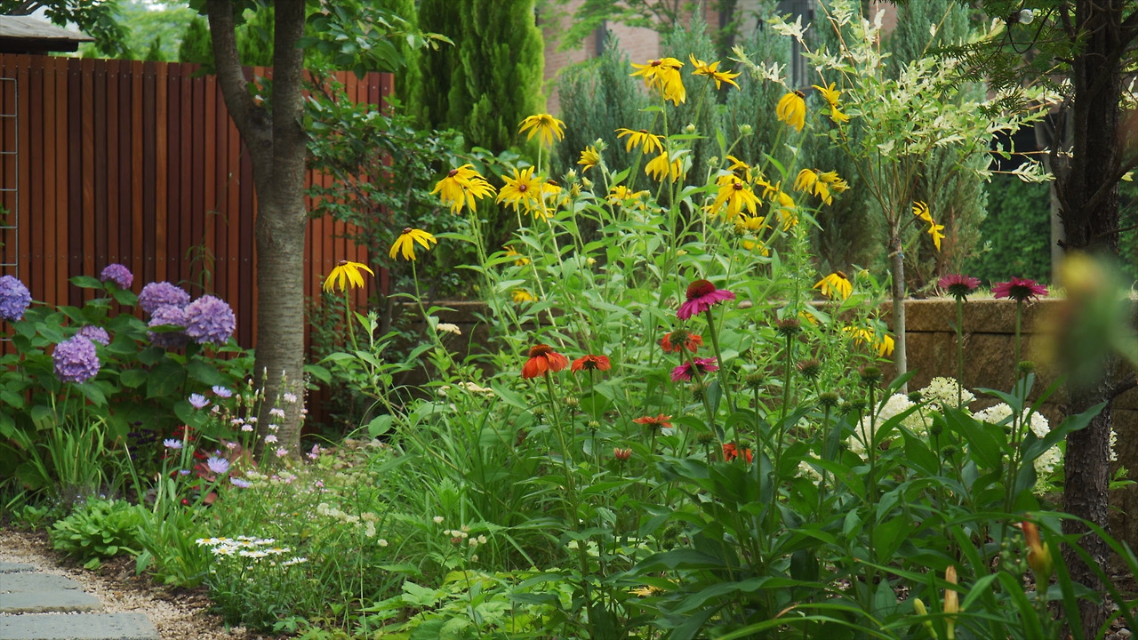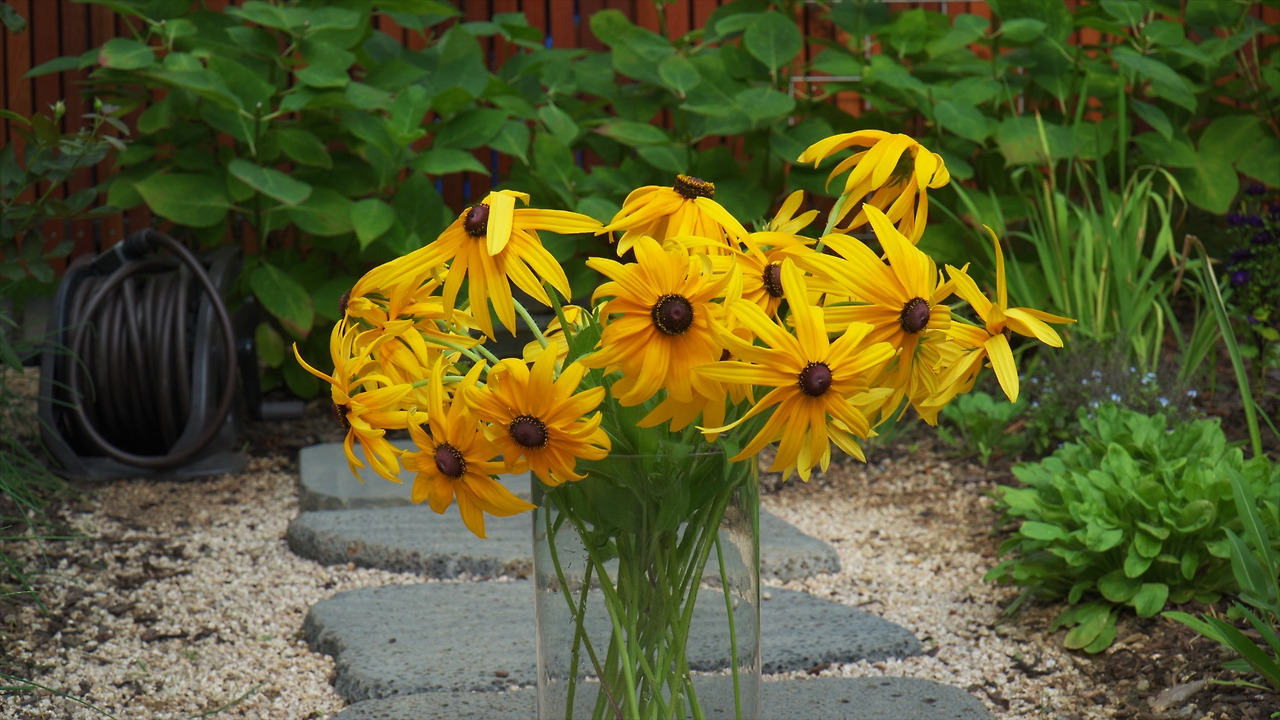 그리고 여름을 대표하는 꽃 중 하나인 루드베키아가 있다. 남아메리카 대륙에서나 만날 수 있을 듯한 강렬한 태양의 원조적인 아름다움을 가진 꽃. 그러나 우리 집 미니 정원에서는 감당할 수 없는 압도적인 키와 덩치를 지녔다. 비슷한 이유로 지난 5월 초 샤스타데이지를 모두 정리했는데, 루드베키아도 조만간 정리를 할 예정이다. 하지만 뜨거운 여름 태양 아래에서의 루드베키아만이 가지고 있는 원초적 아름다움을 포기할 수 없어, 키가 작은 품종을 새롭게 구해 다시 데리고 오기로 결심했다.