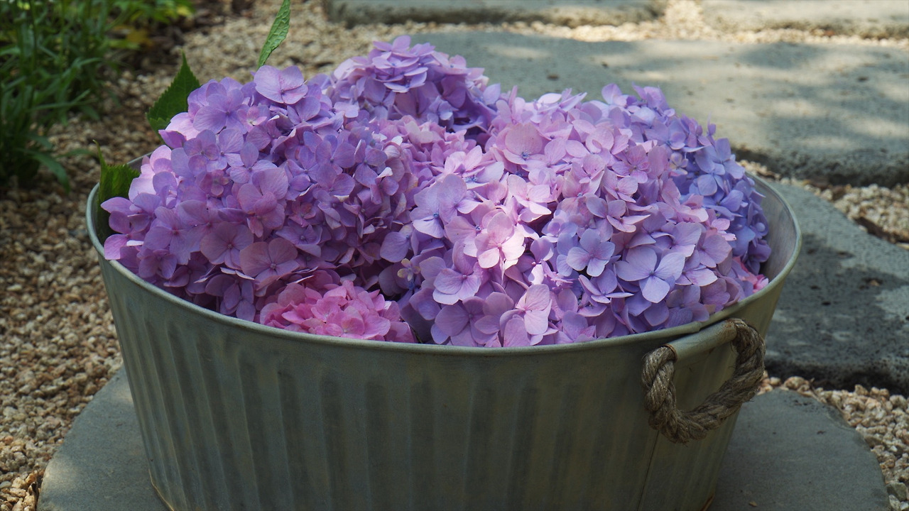 이렇게 한 번 두 번 꽃들을 자르고 정리를 해주니 마음을 내려놓기가 훨씬 쉬워졌다. 그래서 마지막 남아 있던 수국 꽃들을 장마가 시작되기 전날에 하나도 남김없이 모조리 잘라 주었다. 6월 한 달 동안 우리 집 미니 정원의 한쪽 면을 가득 채우고 있었던 수국꽃이 사라지니 마당이 허전해지고 내 마음도 텅 비어버렸다.