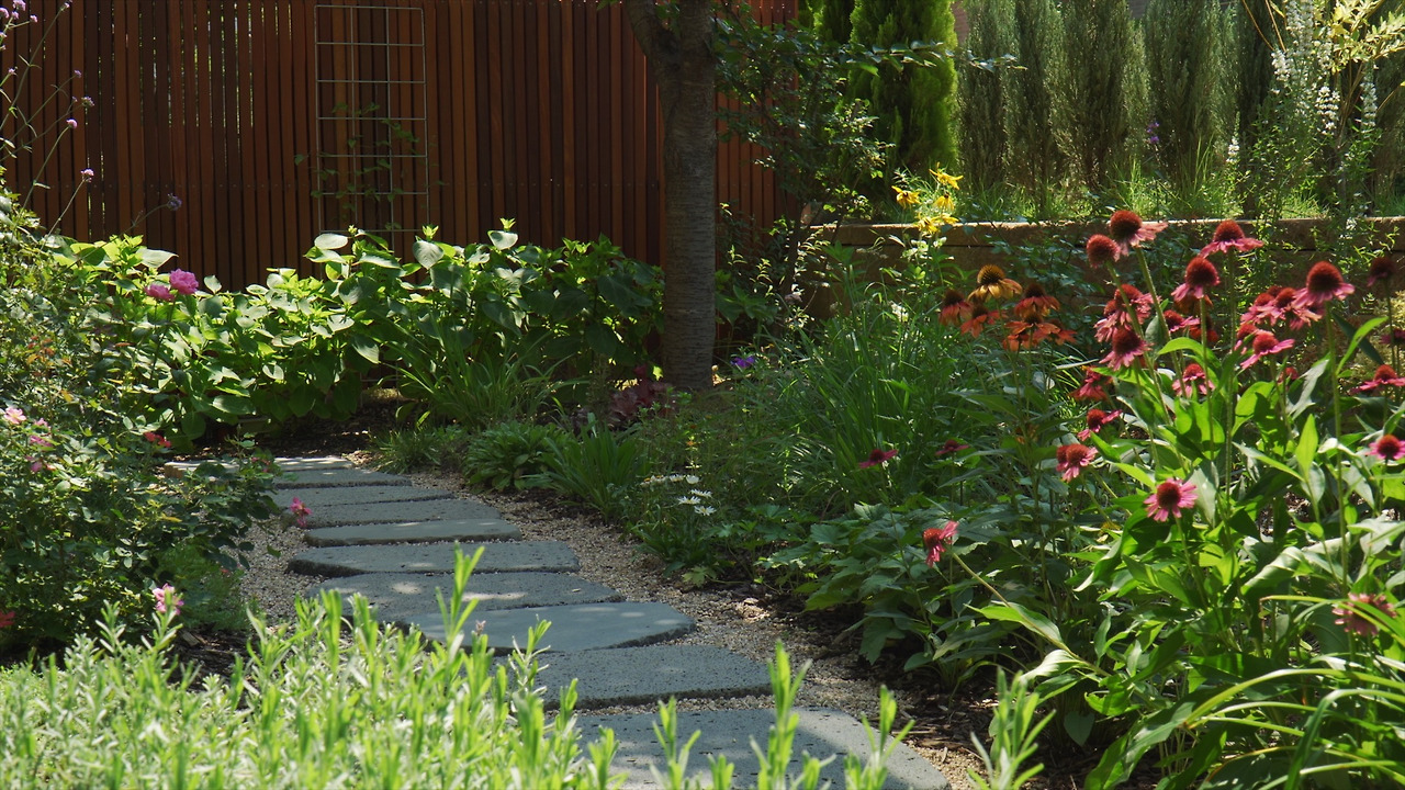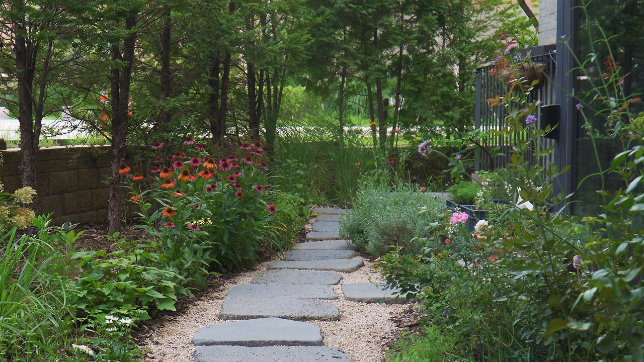 이렇게 꽃들을 정리하고 빈자리를 만든 후 디딤석을 깔고 마사토를 채워, 루드베키아 때문에 가려져 있었던 그린라이트 그라스 바로 앞까지 새로운 길을 만들었다. 꽃을 좀 포기하고 덜어내더라도 계속 마음이 쓰이고 지저분해 보였던 마당 한쪽을 정리하고 나니 막힌 속이 뻥 뚫리는 느낌이다.