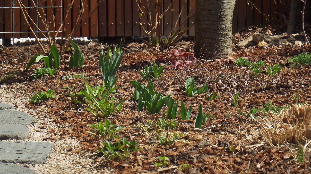 무스카리가 먼저 필 것 같았지만 기대했던 것만큼 꽃대가 쑥쑥 올라오지 않고 있다. 대신 수선화의 꽃대가 부쩍 자랐다. 이대로라면 무스카리와 수선화가 비슷한 시기에 활짝 개화를 할 것 같다. 꽃이 피지 않을 쭉정이들이 몇몇 보이기도 하지만, 튤립도 뾰족뾰족 몸집을 불리며 꽃대를 올릴 준비를 하고 있다. 수선화가 한창일 때 튤립은 하나 둘 꽃이 필 것이다.