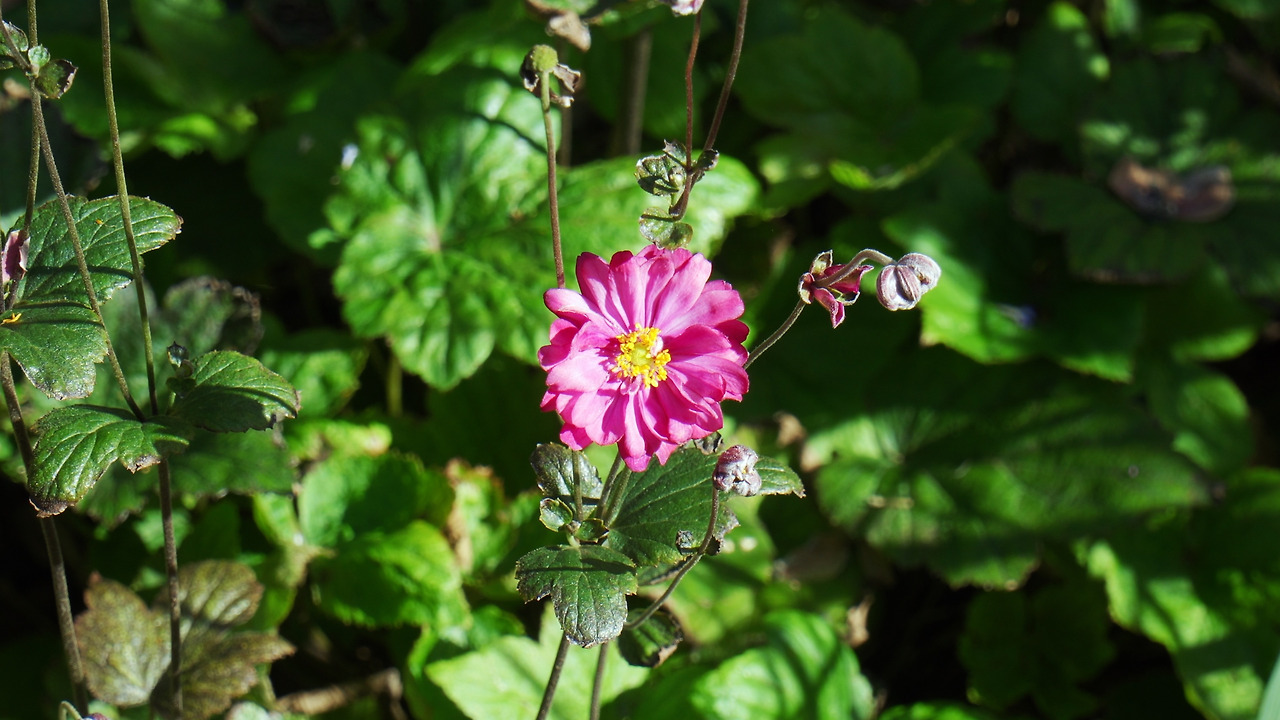 꽃대가 올라오고, 꽃봉오리가 만들어진 후 한 달도 더 지난 추명국이 9월 첫 주가 지나서야 피었다. 우리 집 마당에는 오리지널 분홍 홑겹 추명국, 하얀색 홑겹 추명국, 자주색 겹 추명국 이렇게 세 종류의 추명국이 있다. 가장 먼저 핀 아이는 겹 추명국.