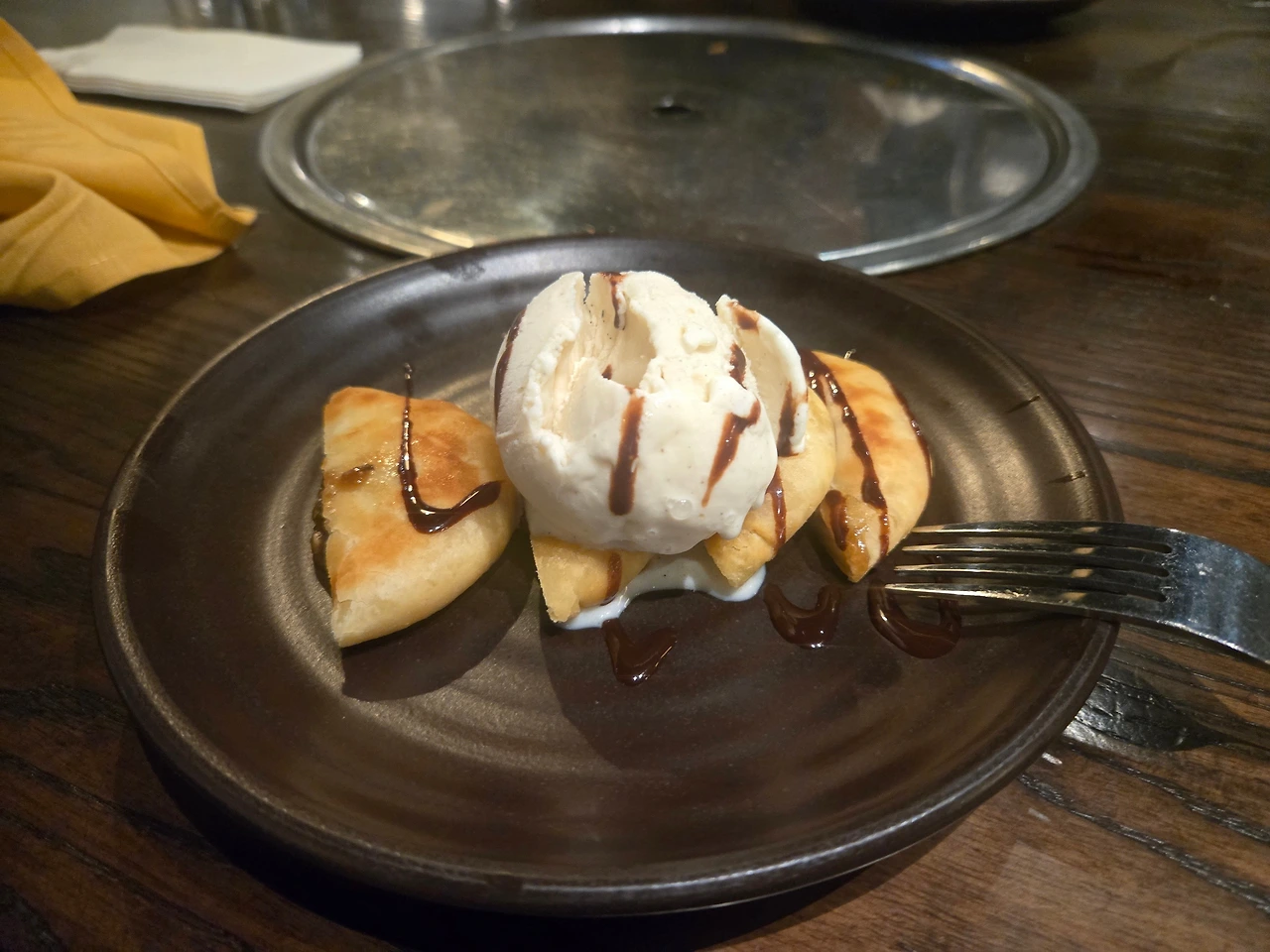 야무지게 후식으로 호떡 아이스크림까지 먹었어요. 아, 저 호떡을 먹다 보니 한국 노점에서 파는 기름기 좔좔 흐르는 쫀득하고 뜨거운 길거리 호떡이 더더욱 그리워지는 거 있죠. 이래서 사람 욕심은 끝이 없나 봅니다.