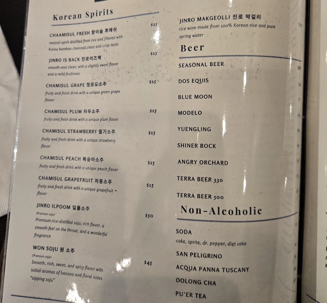 소주 약 한화 2만 원. 원소주까지 다양한 소주 종류가 있길래 재밌어서 그냥 찍어보았다.