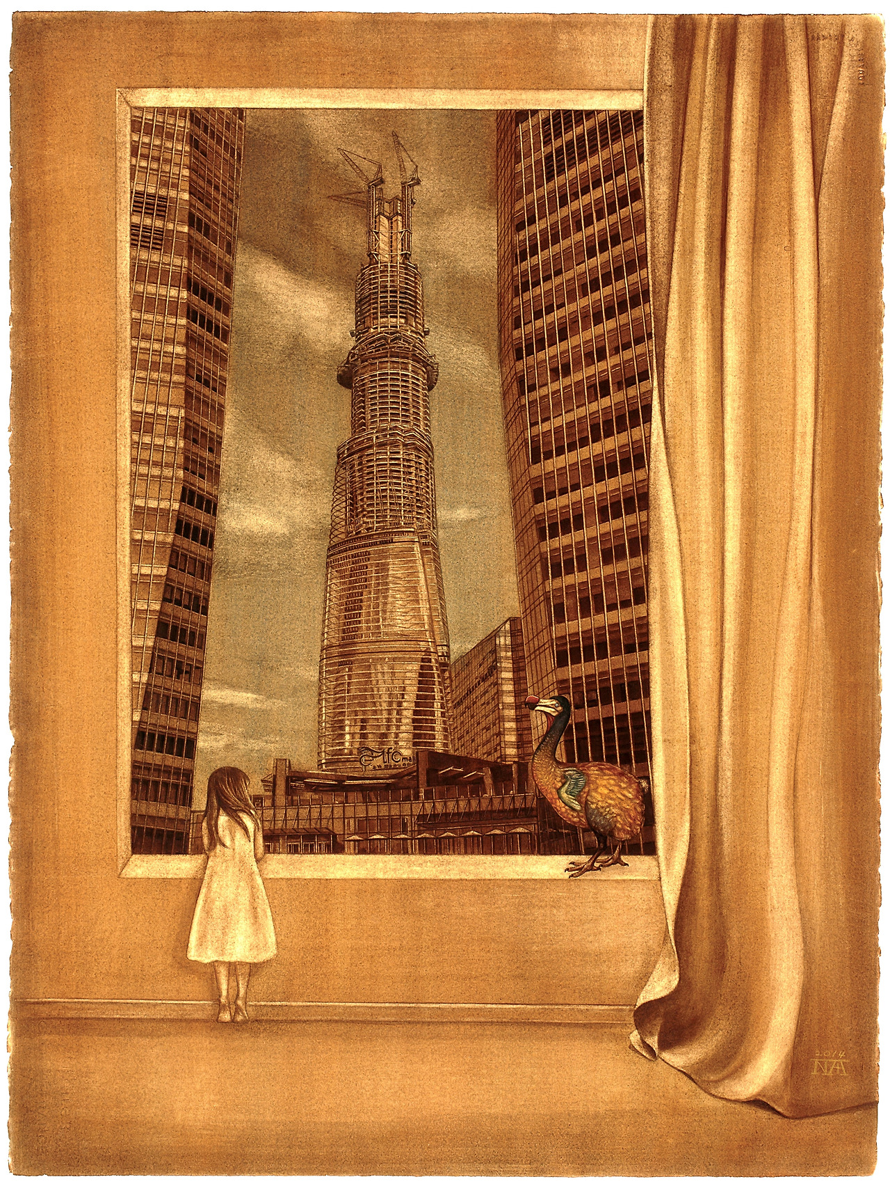 내 그림에서 소녀와 도도가 바라보는 복잡한 대도시는 미노타우로스가 갇힌 미궁과 다를 바 없다. 건너편에서 미노타우로스가 소녀와 도도를 바라보고 있을지도 모른다. 끝없이 높아져만 가는 빌딩 숲 속의 도도는 과거와 현재 그리고 미래에 인간에 의해 사라져 갈 동물을 상징하고 있다. 소녀는 우리가 물려주는 환경에서 살아가야 하는 다음 세대를 상징한다.