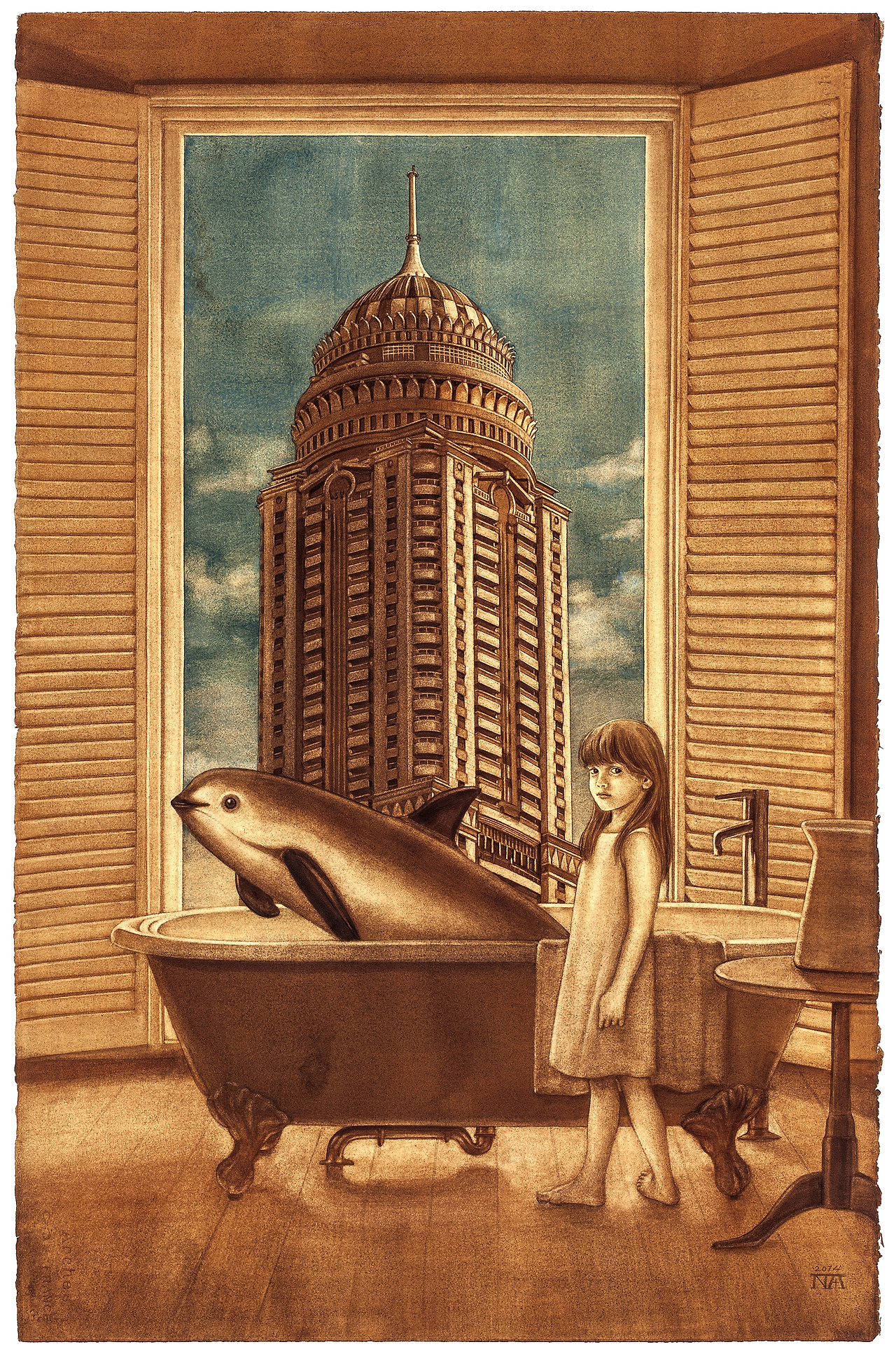 더 높고 넓고 좋은 집이 아니라 그저 살 곳이 필요한 바키타를 위해 우리는 무엇을 할 수 있을까. 나는 안타까운 마음을 담아 소녀의 집 욕조에서 놀고 있는 바키타를 그렸다. 욕조가 너무 작다는 것을 알기에 소녀의 표정이 밝지만은 않다. 창문 너머 보이는 빌딩은 두바이에 있는 프린세스 타워로 지상 101층, 높이는 413.4미터다. 현재 세계에서 열여섯 번째로 높은 건물이고 완공된 2012년부터 지금까지 세계에서 가장 높은 주거전용 건물이라는 기록을 보유하고 있다.