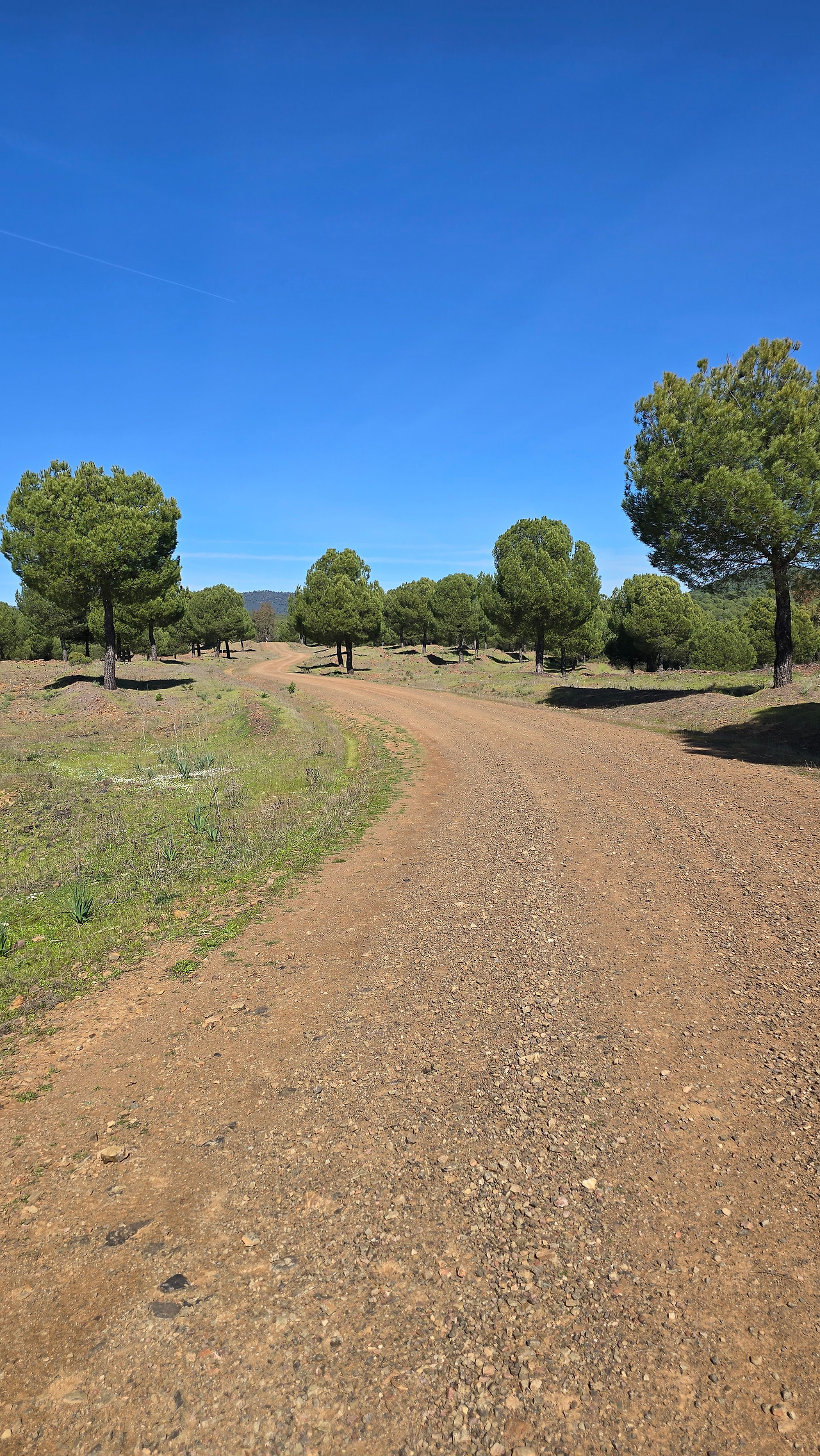 07:20 알베르게에서 출발해서 10:40 El Real de la Jara까지 14km는 참나무 농장을 통과하는 구간이었다. 오르막 내리막을 수없이 반복하면서 돌고 돌아 다시 원점으로 가고 말 것 같이 굽이굽이 진 길이었다. 별다른 변화도 없이, 짐을 벗어놓고 딱히 쉴 만한 곳도 없이 참나무 숲과 약간의 소나무 숲을 통과하는 길을 걸어야 했다.