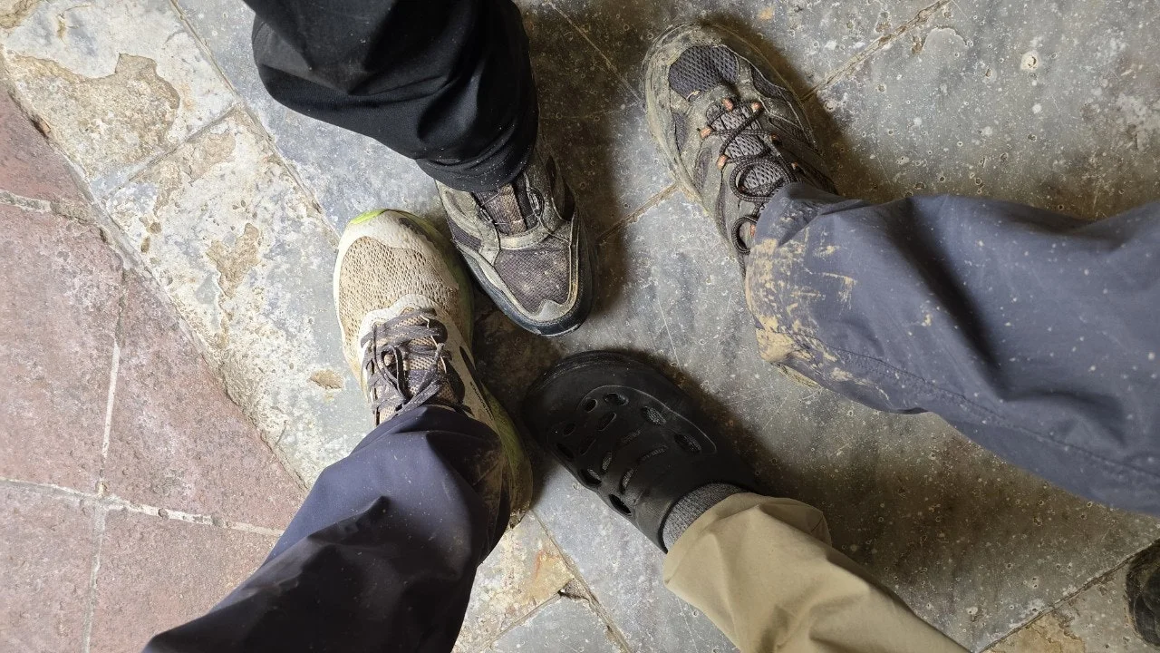 2시경 Zafra에 있는 Albergue Convento San Francisco 도착했다. 어제 내린 비로 길이 질퍽해서 신발과 바짓가랑이가 흙이 묻고 흙탕물이 튀어 엉망이었다. 넷이서 신발을 맞대고 기념 촬영을 했다.