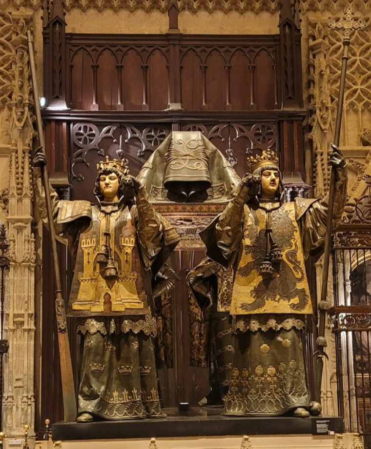 강은 역사다. 긴 역사의 숨결을 간직하고 유유히 흐른다. 과달키비르 강은 콜럼버스의 의욕 넘치던 그 모습을 흘려보내지 않고 있으리라. 이사벨 여왕의 과감한 지원 결정에 힘을 얻어 신대륙 발견이라는 세기적인 성공을 하고 돌아온 콜럼버스의 모습도 기억하리라. 신대륙을 발견하고 돌아온 콜럼버스는 그리 환영받지 못했다. 시기와 질투로 사람들은 그를 맞이했다. 그 정도는 누가 못하겠어? 나도 할 수 있어! 하는 식이었다. '콜럼버스의 달걀'이란 말이 나오게 된 사연이다. 세비야 대성당 안에는 콜럼버스의 관이 있다. 바닥에 묻혀 있지 않고 공중에 부양되어 있다. 자신의 성공을 질투해 마지않던 이들에게 하도 시달려 결코 스페인 땅에 묻히기를 싫어한 그의 입장을 배려한 것이라고 한다. 이사벨 여왕의 콜럼버스 지원을 찬성했던 레온 왕과 카스티야 왕은 콜럼버스의 관을 앞에서 의기양양하게 받치고 있는 것과는 다르게 반대 의사를 보였던 아라곤 왕과 나바라 왕은 뒤에서 머리도 들지 못한 채 관을 떠받치고 있다.