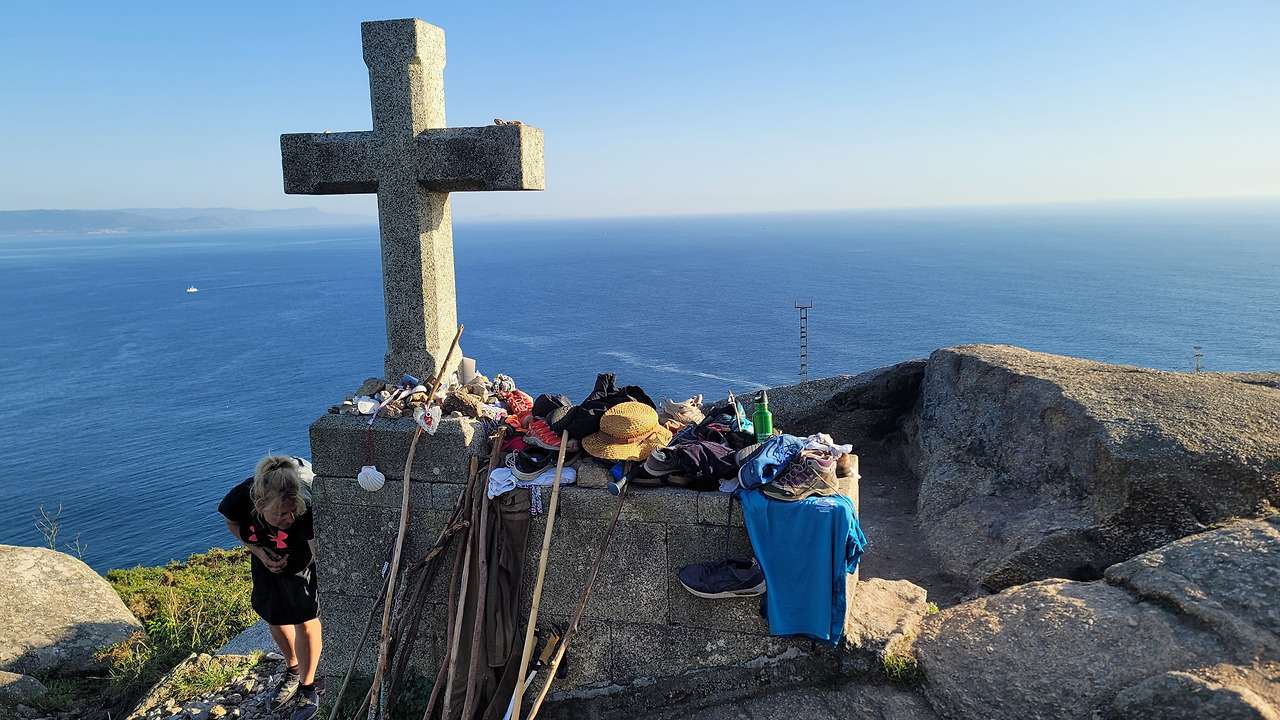 지금 내가 내려다보는 피스테라의 바다는 조용하다 못해 호수처럼 평온하다. 어제 묵시아 성당 해변에서 바라보던 바다 또한 같은 북대서양인데 어떻게 이다지도 대조적일까. 파도가 바위를 철썩이는 묵시아 해변, 이내 세찬 바람과 함께 밀려들던 해무에 자리를 내주어야 했던 그곳과는 달리, 이상하리만큼 잔잔한 피스테라의 바다. 끼리끼리 앉아 속삭이는 순례자들의 이야기 소리가 더 크게 들릴 정도다.