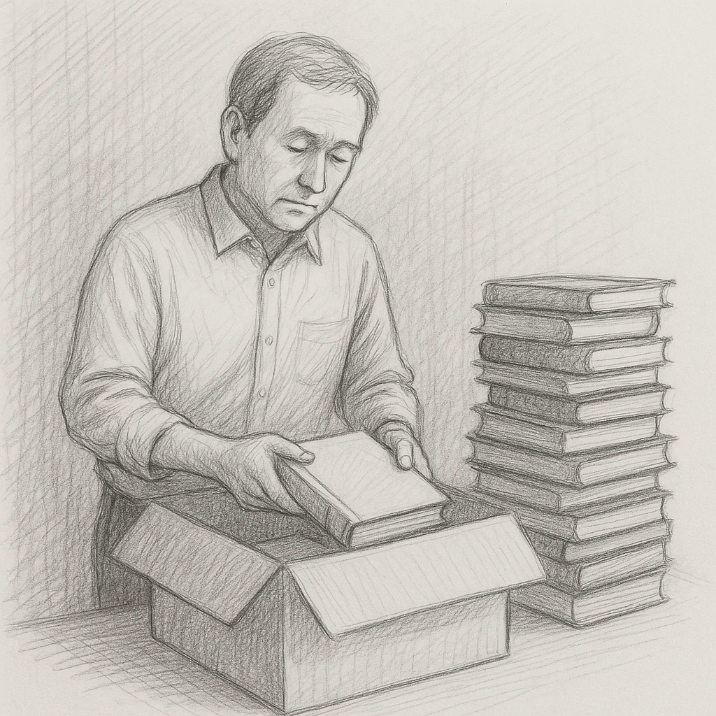 토익, 오픽, 일본어, 프랑스어 교재, 자기계발서, 마케팅 책까지. 50년 동안 쌓아온 학습의 흔적들이 상자 속으로 들어갔다. 모두 다 읽었던 책들, 다시 펼치지 않을 책들.