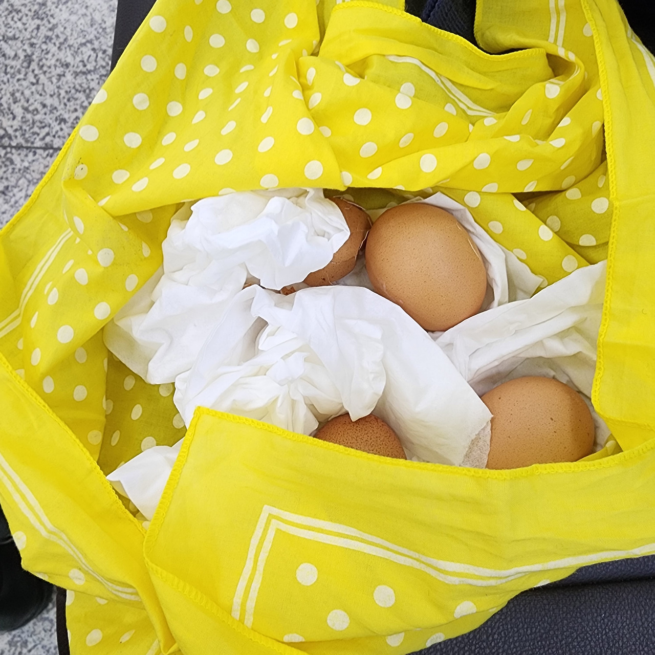 인천으로 가야 했다. 공항에서 엄마를 모시고 셋째가 도착해 있었다. 노란 손수건에 정갈하게 싸 온 계란 몇 알 그리고 맛소금... 한 알 한 알 휴지로 싸서 노란 보자기에 담았다. 역시 엄마답다. 예전엔 삶은 계란이 불편하고 창피했다. '가는 길에 사 먹으면 되지. 굳이 삶아서 구질구질하게 들고 다녀야 하나' 생각했다. 창피했던 그 삶은 계란을 보며 요즘은 고맙고 미안하다.