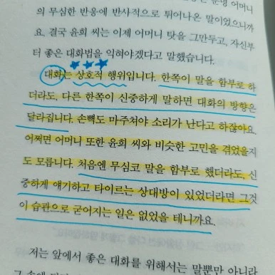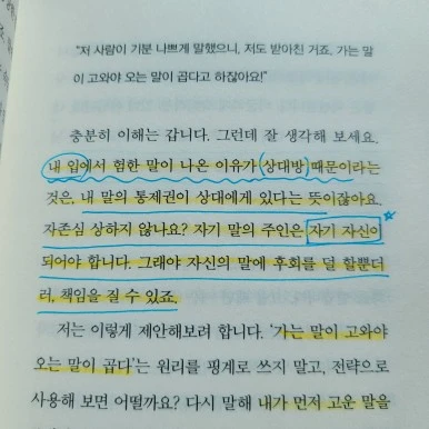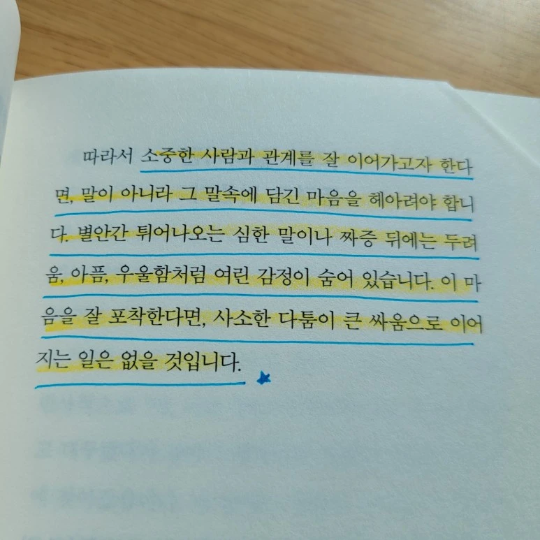 이 책 덕분에 내 감정을 빨리, 잘 다스릴 수 있게 되었다. 그리고 내가 먼저 손을 내밀었다. 감정을 온전히 주고받는 대화를 통해 좋은 관계를 유지하는 게 행복한 가정을 이루는 방법이니까.