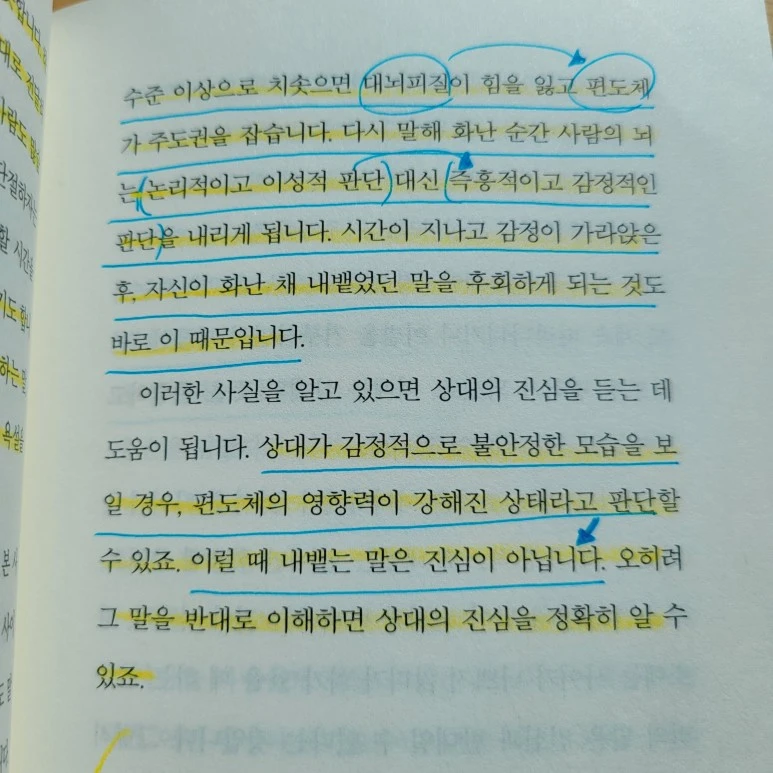 평소라면 내 감정을 주체하지 못하고 울거나 억울함에 씩씩거리다 잠들었겠지만, <대화에 서툰 게 아니라 감정에 서툰 겁니다> 책을 펼쳐 들었다. 2/3 정도 읽다가 덮어두었는데, 나머지도 마저 읽어야겠다는 생각이 들었다. 나는 언제나 책에서 답을 찾았다. 분야를 불문하고 어떤 책을 읽든, 그 상황에 맞는 답을 언제나 책에서 찾았다. 이번에도 책에 답이 있을 것만 같았다. 나의 책 읽는 습관은 이럴 때 도움이 된다. 책을 읽을수록 마음이 진정됐다.