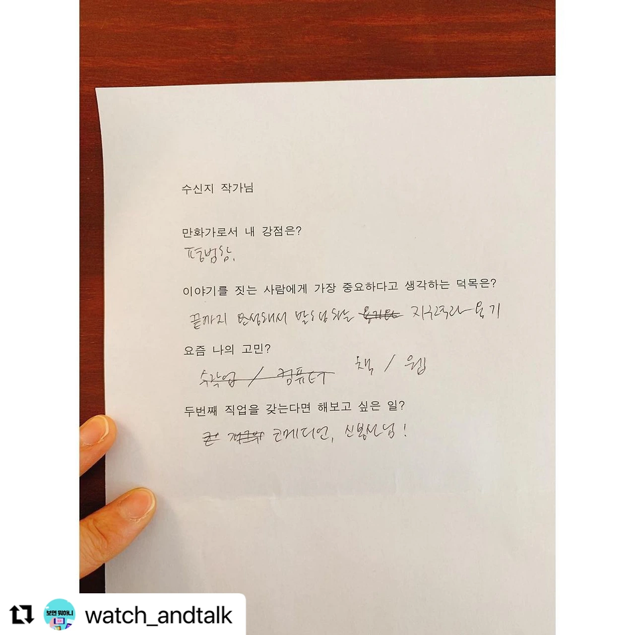 그 때는 수신지 작가님이 지금처럼 유명하거나 수입이 안정적일 때가 아니었는데, 그럼에도 수정 제안을 거절하고 작가님 생각대로 해 나갈 수 있었던 힘은 어디에서 나왔을까요? 빨리 만화가로 자리잡는 게 더 중요하게 느껴질 수도 있었을 텐데요.