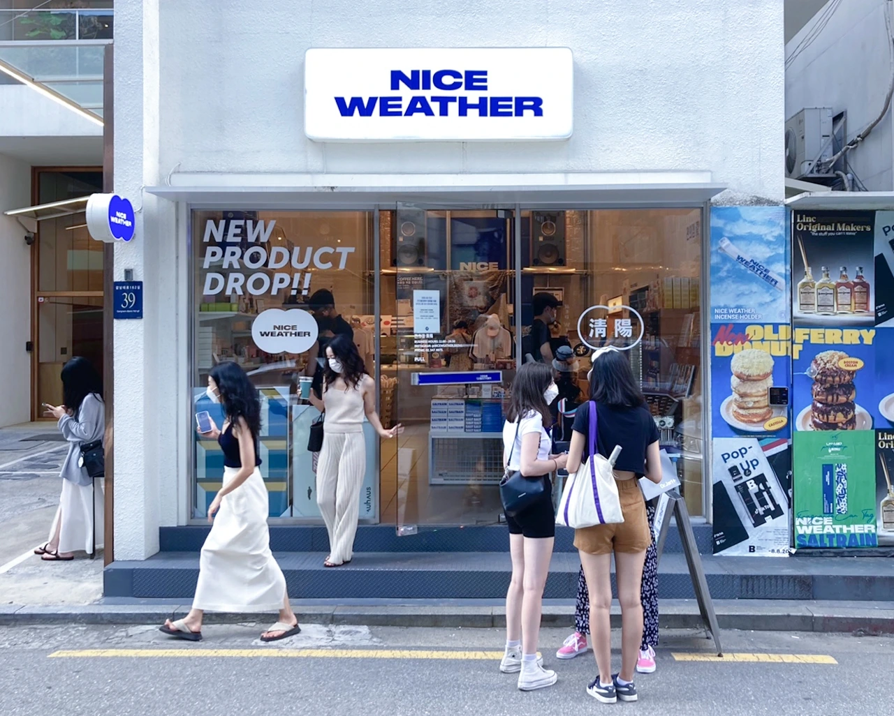 반면 '편의점'에 대한 생각이 나와 달라 아쉬웠었어. 편의점은 디자인이나 취향보다는 실용성이 강한 특징이 강하다고 봐. 편의점은 동네마다 근접해있어 급하게 필요한 제품을 사는 장점이 있잖아. 우리나라뿐만 아니라 전 세계의 편의점이 다 그럴 거야. 이런 부분에서 나이스웨더의 의도는 이해는 되지만 동의하기는 힘들었어. 그래서 나이스웨더가 스토어보다는 전시공간의 분위기가 짙게 느껴졌어. 차라리 편의점의 한 부분만(예를 들어 생활용품) 깊게 나타냈다거나 편의점이라는 키워드를 쓰지 않았다면 어땠을까 하는 싶은 생각이 들었어. 물론 지금 나이스웨더는 AK플라자, 더현대서울에 입점할 정도로 유명해지긴 했지.