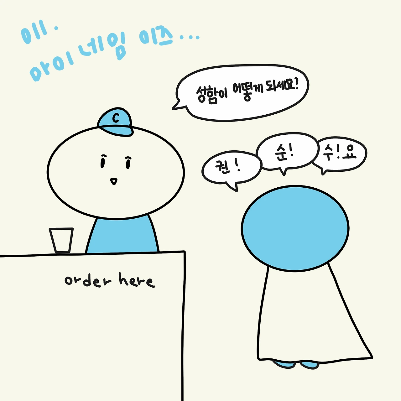 이름을 묻고 답하는 일은 살면서 정말 피할 수 없는 것이니 이젠 어느 정도 반응들을 즐기곤 한다. 하지만 가끔 정말로 피하고 싶은 상황들을 마주한다. 바로 카페 계산대 앞에서 내 이름을 말하는 일이다. 사람이 많아 시끌시끌하거나, 내 뒤에 줄지어 사람들이 서 있는 상황이라면 더욱 그렇다. 이름을 묻고, 주문 번호 대신 이름을 부름으로써 고객과의 더 친밀한 유대감을 형성하고자 하는 그런 카페의 의도와 방침은 충분히 이해하지만.. 계산대를 넘어 정확한 발음으로 한 번에 내 이름을 전달하는 것은 이름이 특이하고 목소리도 작은 나에게 은근히 꺼려지는 일이다. 물론 내 성격이 파워 내향 인간이기 때문인 것도 있지만 말이다. 시끄러운 카페에서는 일치감치 포기하고 발음이 쉽고 편한 민지나 지연 같은 가짜 이름으로 (민지 씨 지연 씨 죄송합니다..)로 주문한 적도 있다. 이름 세 글자 한 번 더 불러주는 게 뭐 대수라고 거짓말까지 하는 건가 의아해할 수도 있지만서도 왠지 입술에 힘주어 다시 말하는 상황이 난 그렇게 뻘쭘할 수가 없다. 피하고만 싶다.