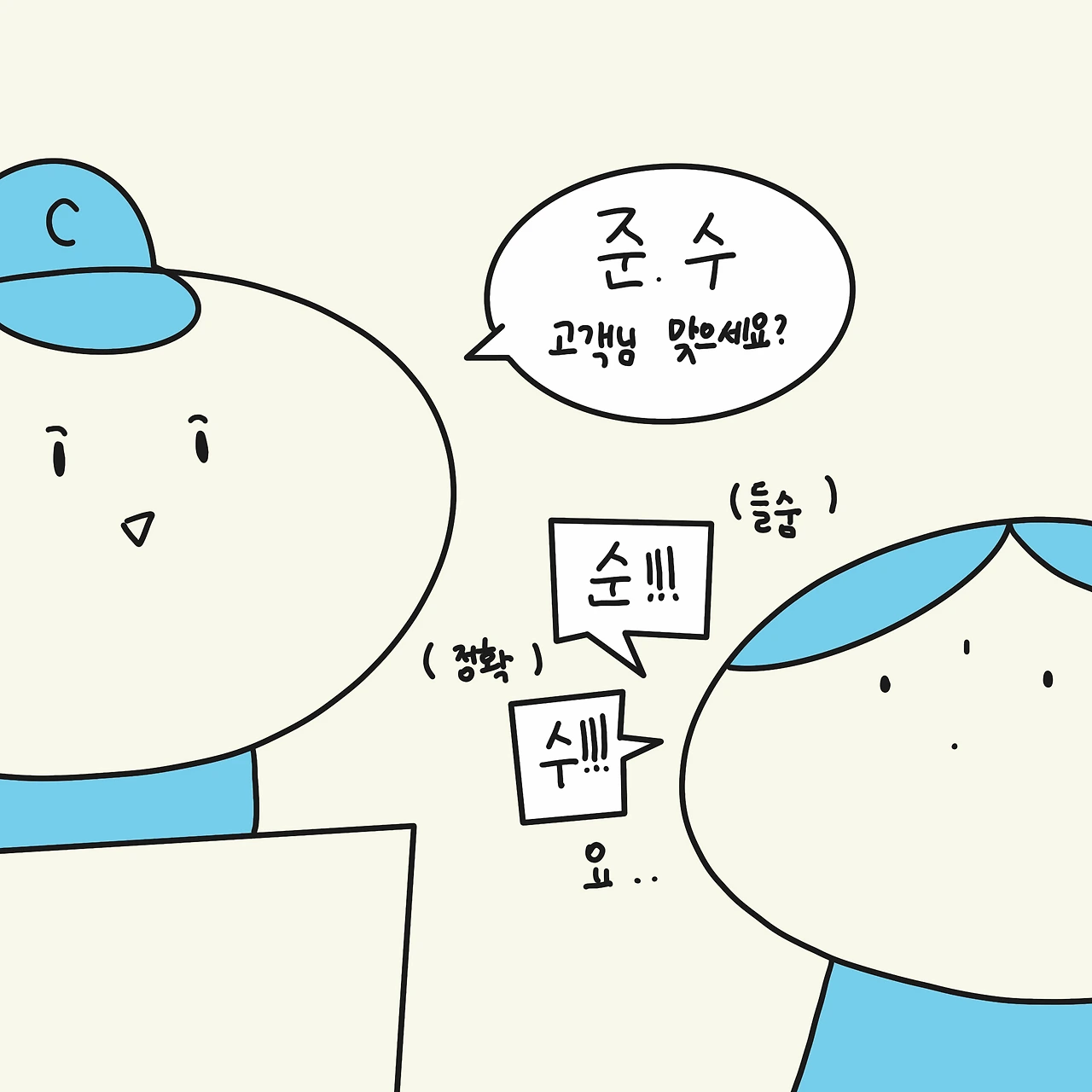 "준수요?"(잘못 듣는 경우 90% 정도는 준수라고 듣는다)