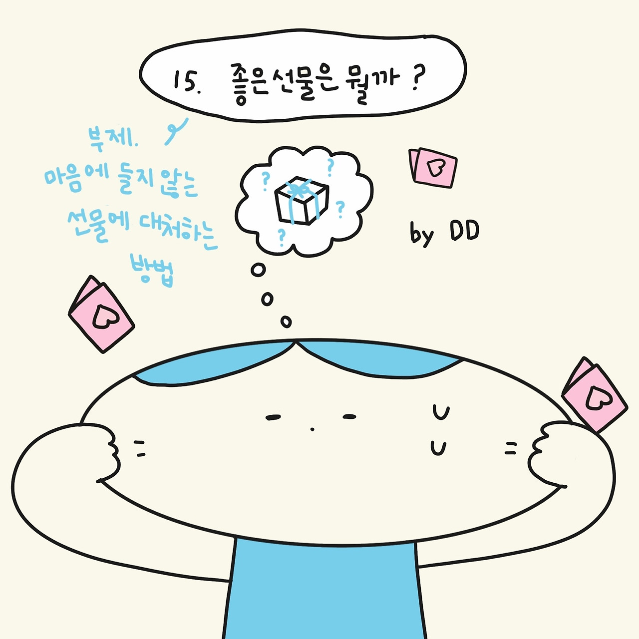 하지만 인간의 선호란 너무나 다양하고, 세상엔 온갖 물건이 과잉 생산되고 있기에 매우 기본적인 이 네 가지 기준들을 모두 만족시키는 일은 쉽지 않다. 때문에 우리는 누군가에게 '좋은 선물'을 주기 위해 드 넓은 인터넷 세계를 끝도 없이 유랑하거나. 이미 낡고 지쳐버려 현금이나 상품권과 같은 조금 편안한 선택을 하기도 한다. 시간이 흐르면서 다양한 사람을 만나고, 여러 번 경험이 쌓이면 조금 적응이 되긴 해도 선물을 준비하기 앞서 항상 많은 고민이 생겼고, 어쩌면 더 어려워지는 것 같기도 했다.