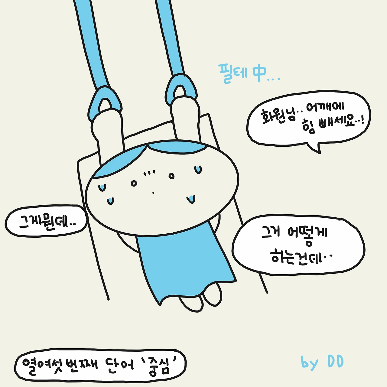 “회원님, 어깨에 힘 빼고 해 볼게요.”
