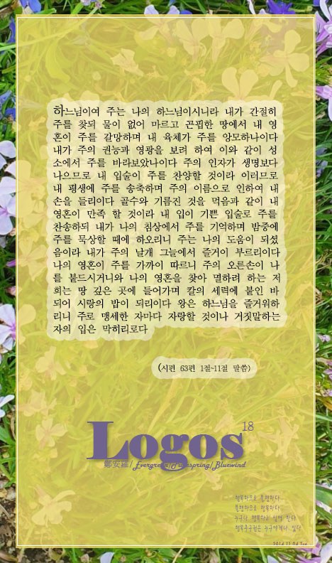 하느님이여 주는 나의 하느님이시니라 내가 간절히 주를 찾되 물이 없어 마르고 곤핍한 땅에서 내 영혼이 주를 갈망하며 내 육체가 주를 앙모하나이다 내가 주의 권능과 영광을 보려 하여 이와 같이 성소에서 주를 바라보았나이다 주의 인자가 생명보다 나으므로 내 입술이 주를 찬양할 것이라 이러므로 내 평생에 주를 송축하며 주의 이름으로 인하여 내 손을 들리이다 골수와 기름진 것을 먹음과 같이 내 영혼이 만족 할 것이라 내 입이 기쁜 입술로 주를 찬송하되 내가 나의 침상에서 주를 기억하며 밤중에 주를 묵상할 때에 하오리니 주는 나의 도움이 되셨음이라 내가 주의 날개 그늘에서 즐거이 부르리이다 나의 영혼이 주를 가까이 따르니 주의 오른손이 나를 붙드시거니와 나의 영혼을 찾아 멸하려 하는 저희는 땅 깊은 곳에 들어가며 칼의 세력에 붙인 바 되어 시랑의 밥이 되리이다 왕은 하느님을 즐거워하리니 주로 맹세한 자마다 자랑할 것이나 거짓말하는 자의 입은 막히리로다